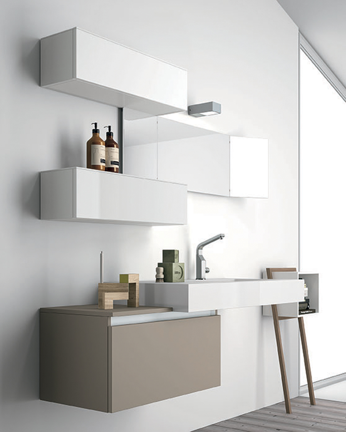 The Modo bathroom collection has a Nordic feel, using white lacquer coupled with wood highlights for a simple and elegant design aesthetic.