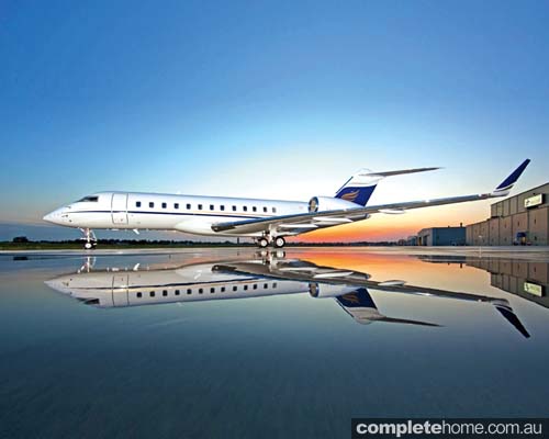 Every detail is custom-made for this elite private jet. The bathroom design features walls covered with Bon Bon silk by Glant, the finest Macassar ebony wood adorns the mirror, and Bamboo golden fittings by Cristal Lalique available through Paris’s master tapware maker THG. schnaase.com, thg.fr. Photography by Steve Schulte