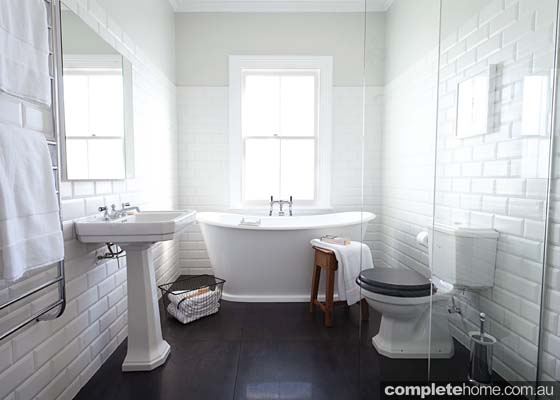 Using monochrome tones and colours is perfect for a modern bathroom with a vintage twist