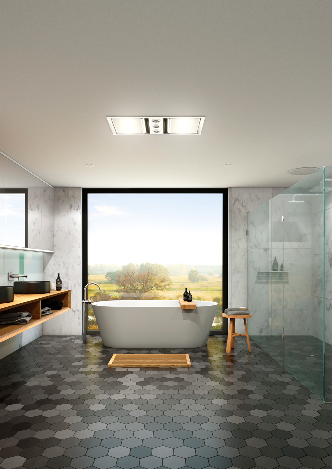 As it’s important to maximise space in small bathrooms and ensuites, an IXL Tastic three-in-one solution can provide excellent extraction, light and heat solutions in one stylish, streamlined module. The Original Tastic three-in-one, for example, can not only eliminate shower steam with its powerful extraction capacity of 283m³/h, it also features four 275W heat lamps to provide the perfect level of comfort and illumination. Its outstanding performance is also backed by a five-year in-home warranty.