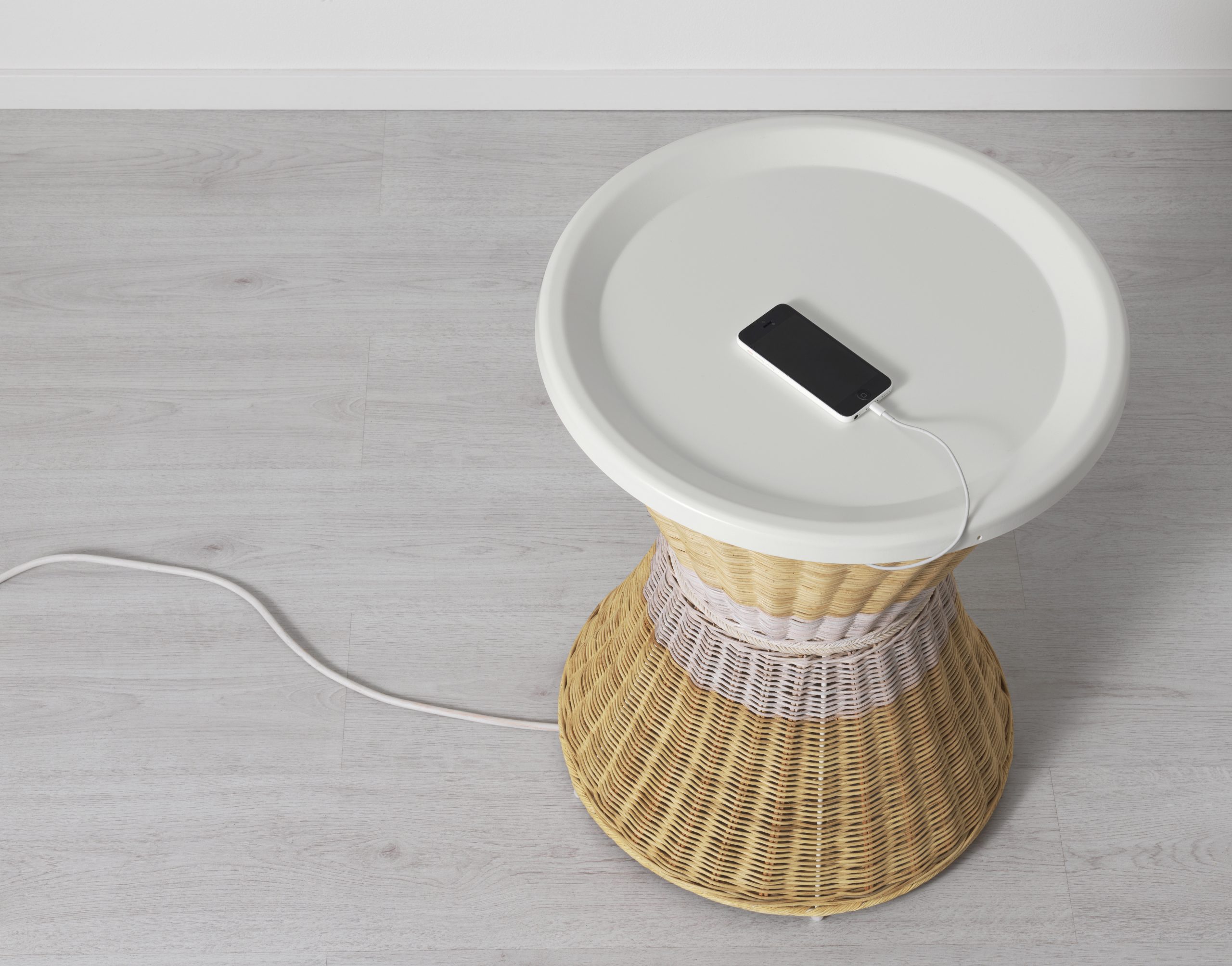 The handmade Sandhaug bedside table with room under the tray for an extension socket for your chargers – ingenious!