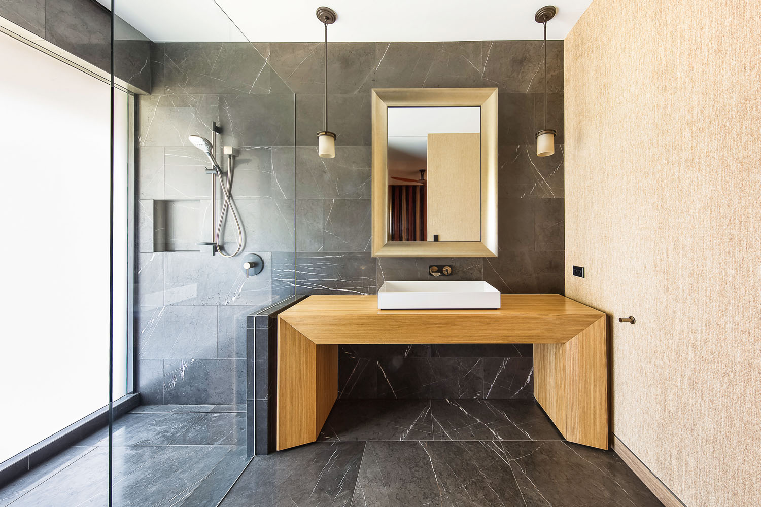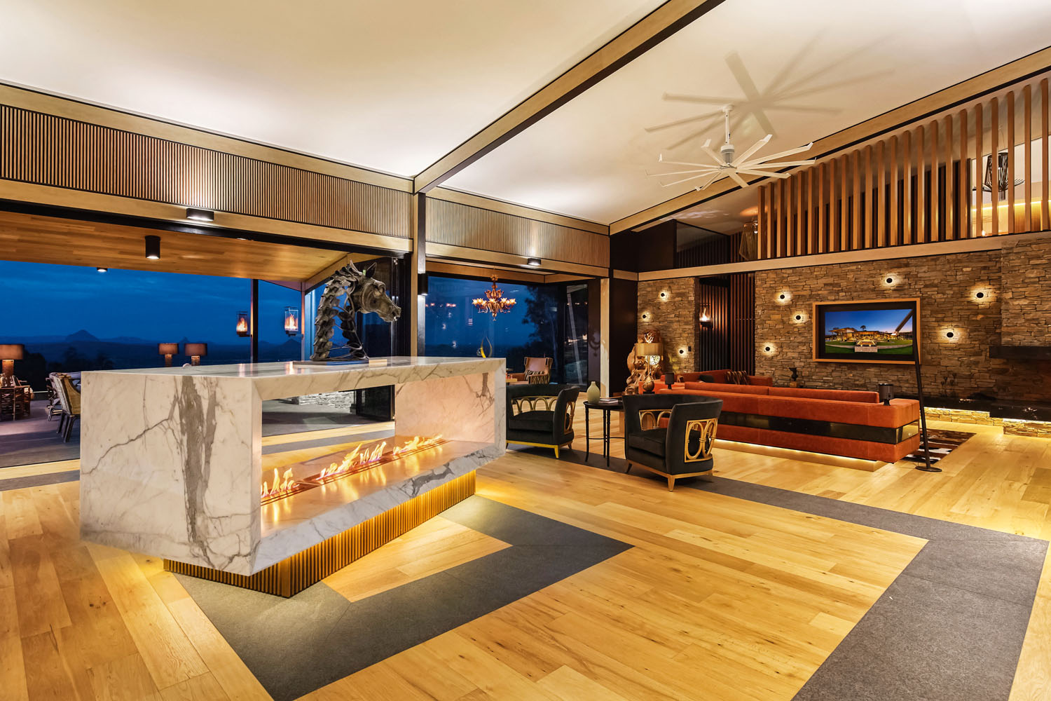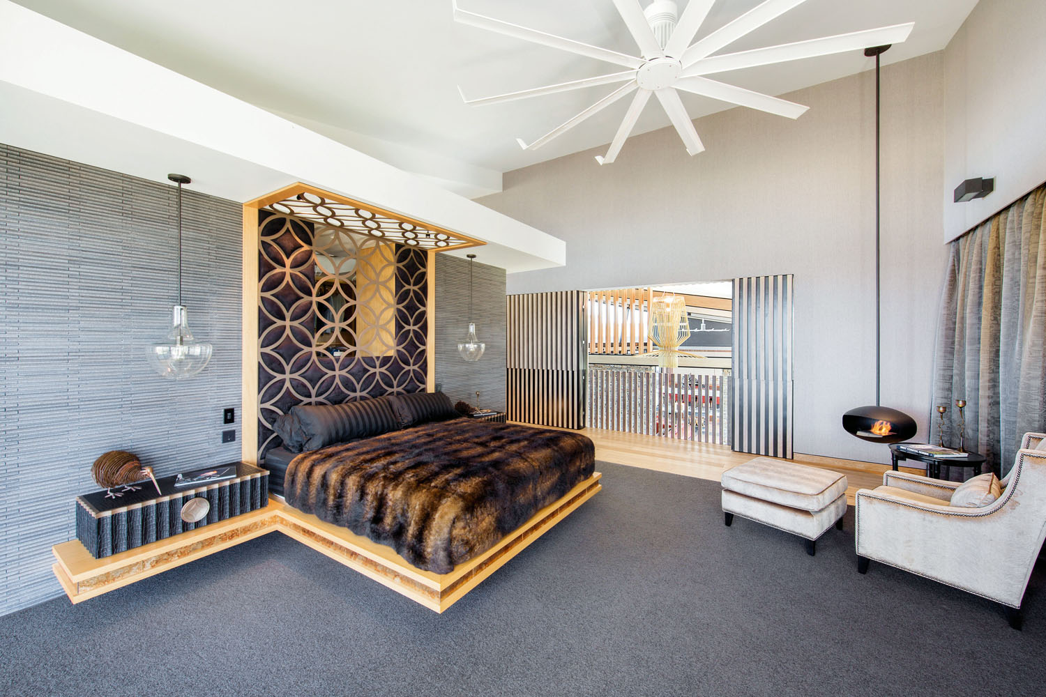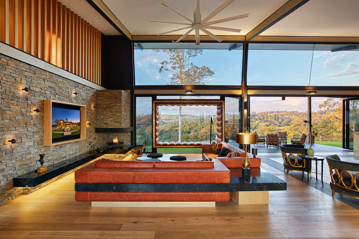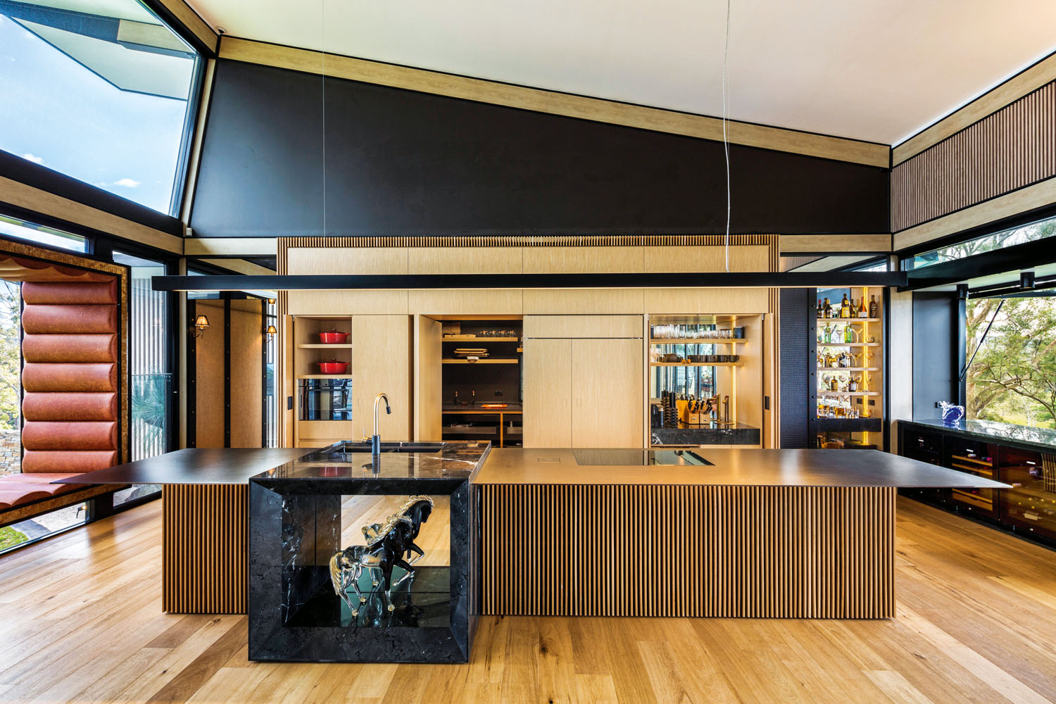 Other quirks in this lodge include a rotating marble fireplace, a one-way triple-etched mirror in the master suite and a fully concealed kitchen. “At first glance, the kitchen zone is more like the front counter and reception area of a luxury hotel,” continues Mark. “It blends into its surroundings with the majority of its functionality concealed. A spacious scullery is concealed with two separate entrances and also incorporates a full bar, but the full gourmet entertainer’s experience is accessible in an instant.”