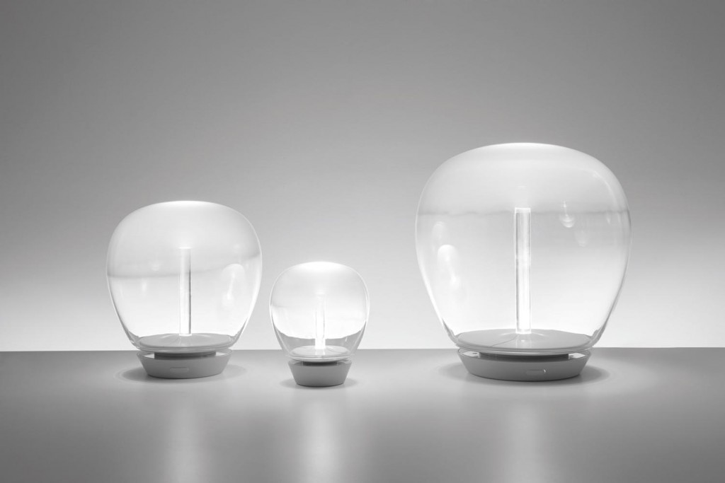 The Empatia table lamp designed by Carlotta de Bevilacqua combines LED technology with the traditional craft of blown glass by Venetian master craftsmen. Each is a one-off piece with a glass blower responsible for forming each individual domed diffuser and instilling it with the desired transparency and opacity to reflect light without glare or losing efficiency.