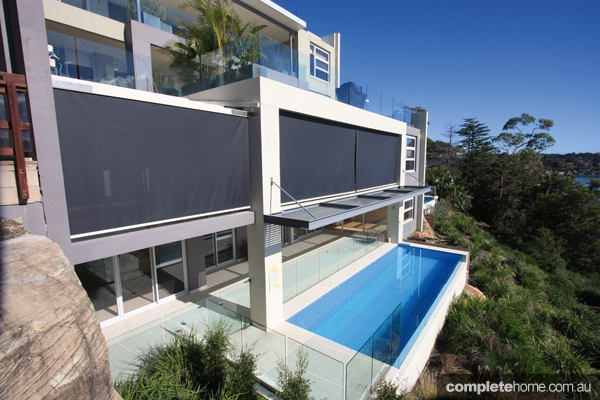 This deck features a combination of timber shutters and roller blinds to turn a sun-drenched outdoor space into a shady room. abesco.com.au
