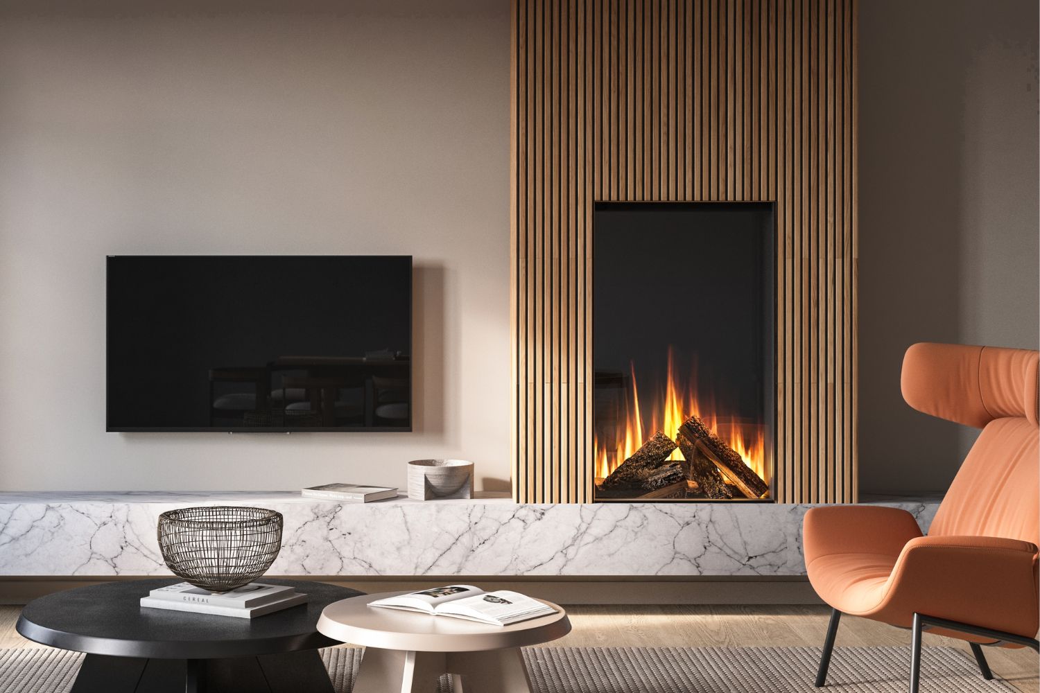Forget plastic logs and flickering screens. Every British Fires model comes with Deluxe Real Logs, handcrafted from genuine oak inspired by the New Forest in southern England. Each log is individually cut, charred, and arranged for a flame picture so authentic, you’ll double-take. It’s this level of detail that makes a British Fires installation feel alive even when it’s not producing heat.