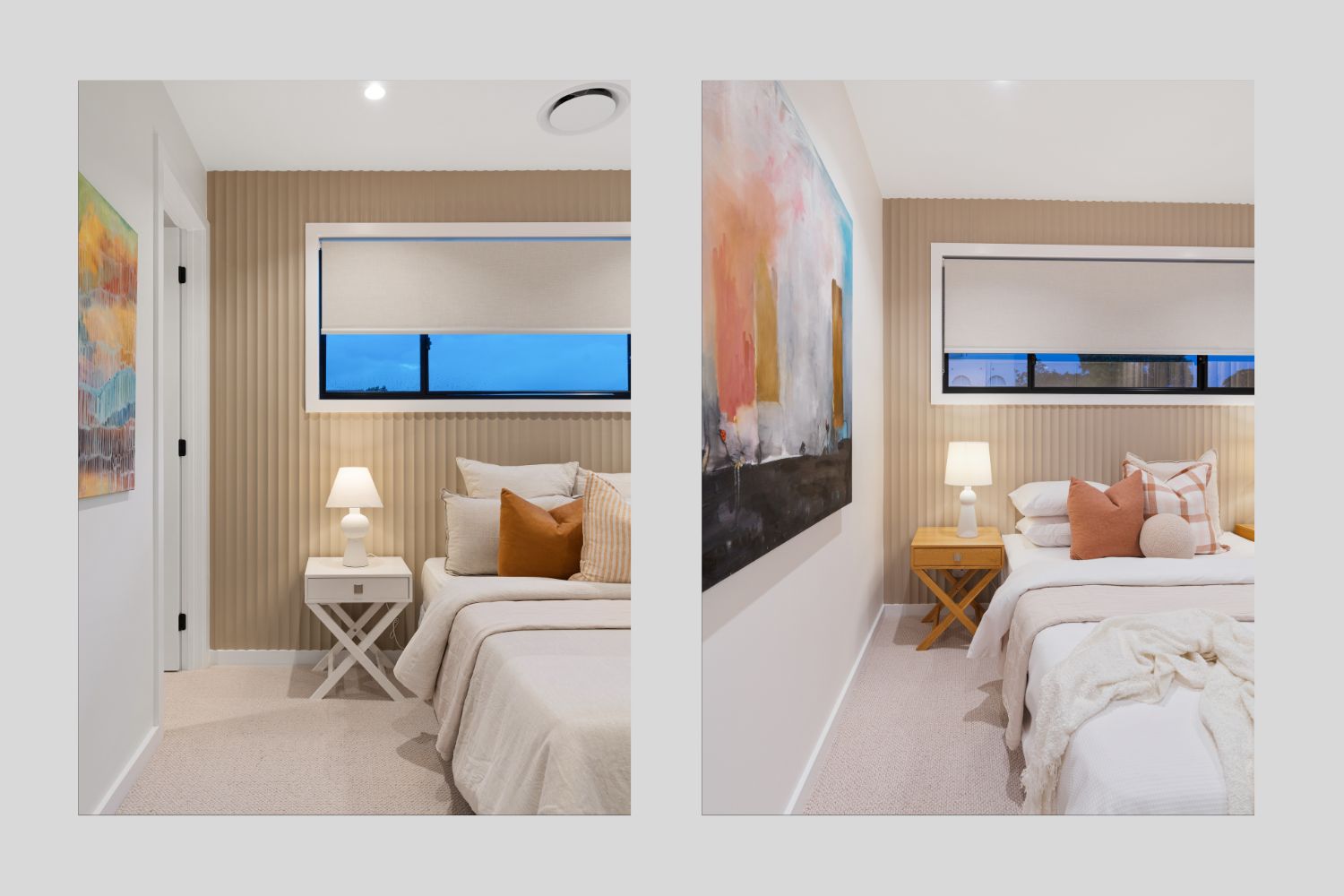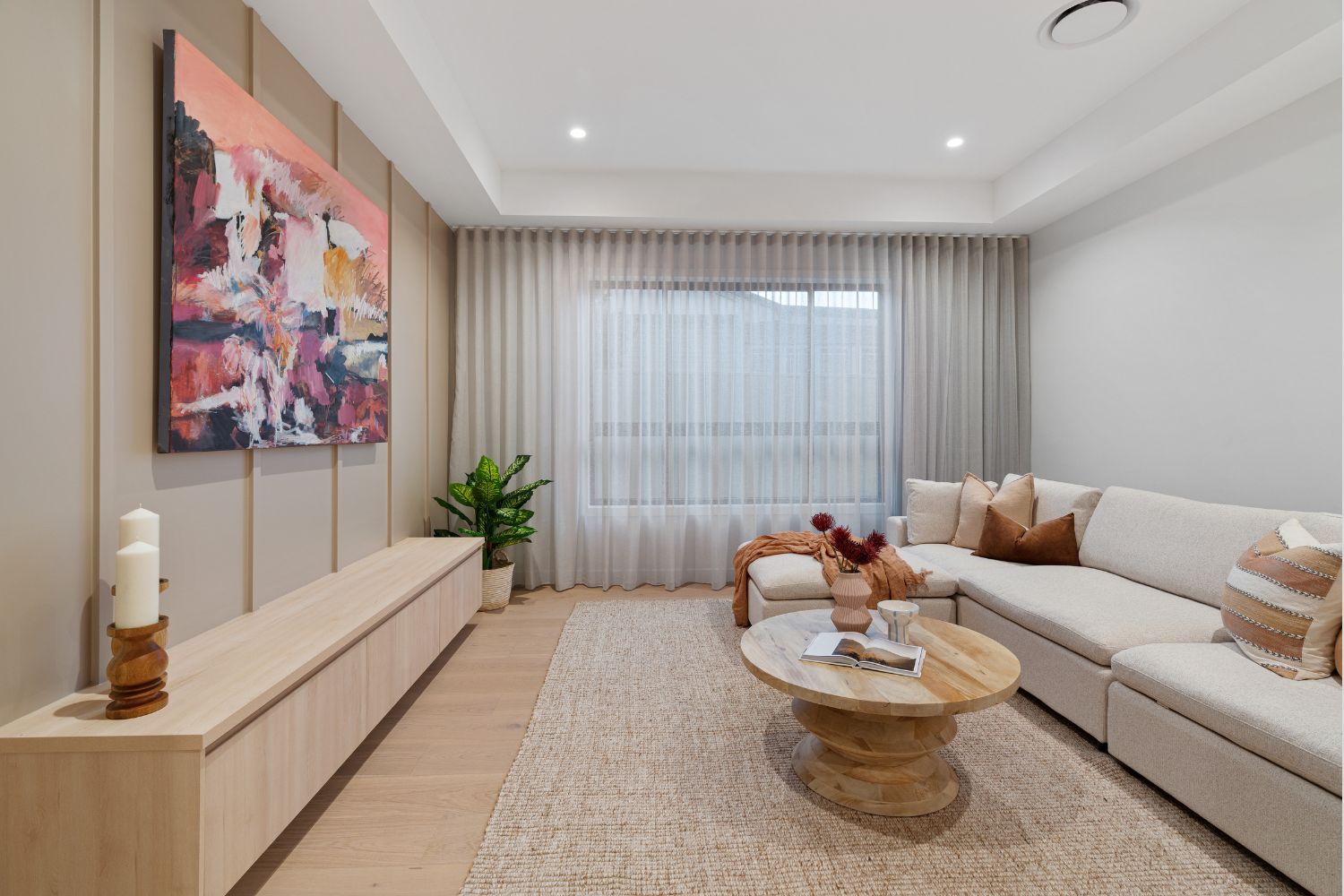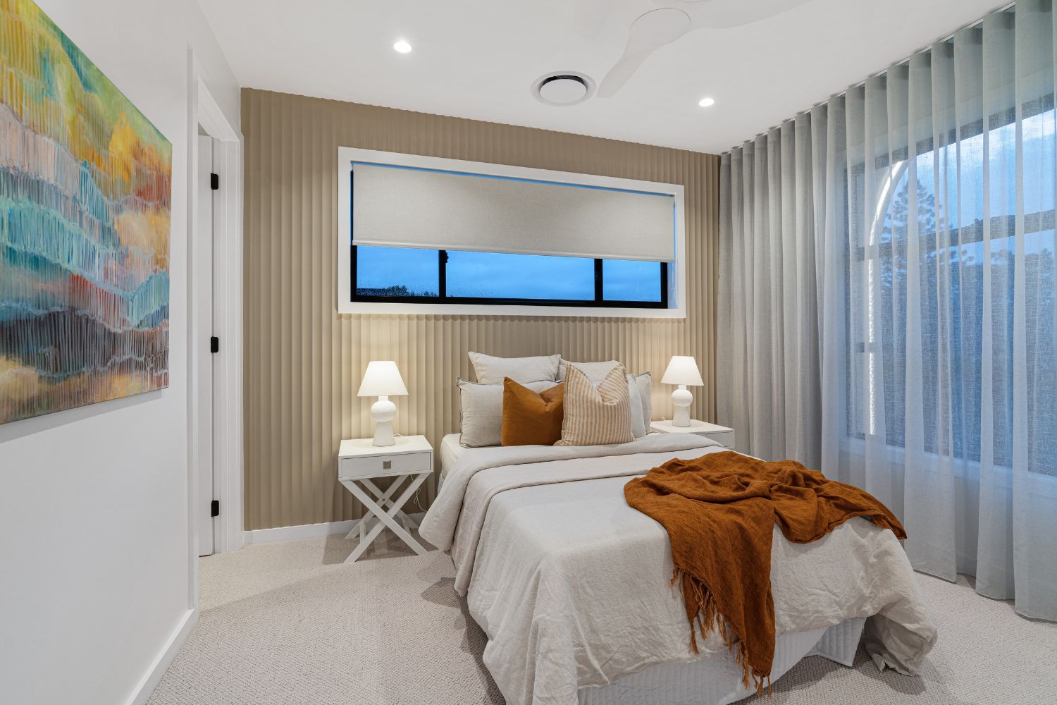 Located on the upper level, each of the bedrooms are spacious and thoughtfully designed. Modernity and comfort converge with automatic draped curtains, incorporating a sheer element that adds privacy and soft light. An upstairs entertainment room is also included, offering a retreat from the main communal areas for the children to enjoy.