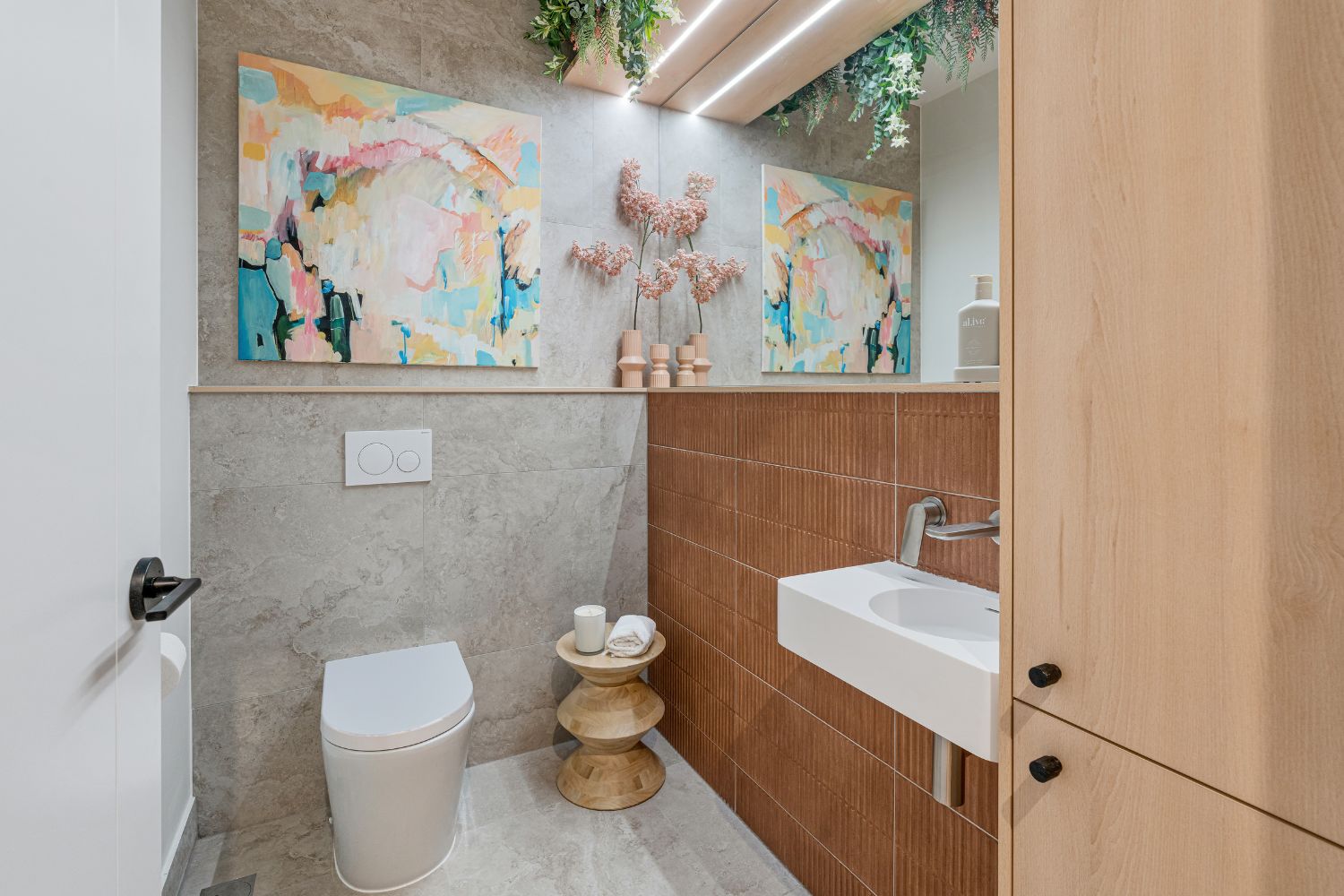 Maree shares, “It was such a fun and enjoyable experience visiting Robyn’s studio and working through the pieces to select artwork that not only exemplified the space but also connected potential buyers to the biophilic design elements reflecting nature and wellbeing.” With decades of experience in curating private, public, and commercial spaces, Robyn’s work was a perfect fit for The Mesa.