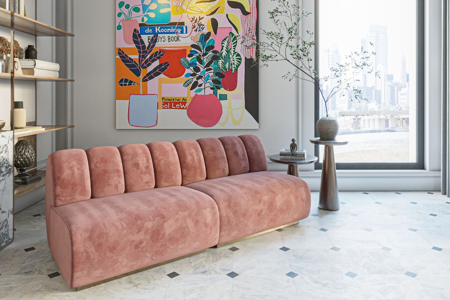 This modular sofa in blush pink tones steals the show. caffelattehome.com