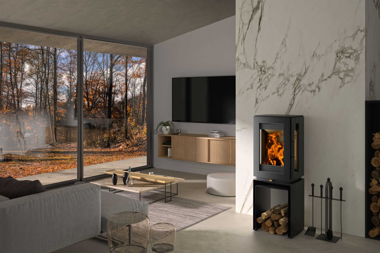 The Hergóm Glow offers a refined, elevated aesthetic with a minimalist appearance that gives the fire a lighter, more architectural presence. Perfect for open-plan interiors or spaces where you want the fire to float visually, this model pairs modern design with powerful performance. Enjoy efficient, clean combustion and a wide viewing window in a freestanding form that makes a subtle yet striking impression.