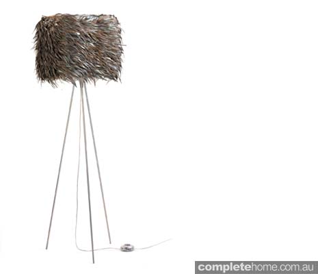 1. Iridescent green-coloured rooster feathers cover the Kubus H4 floor lamp, designed by German designer Heike Buchfelder and available from Textura. RRP $4650. textura.com.au