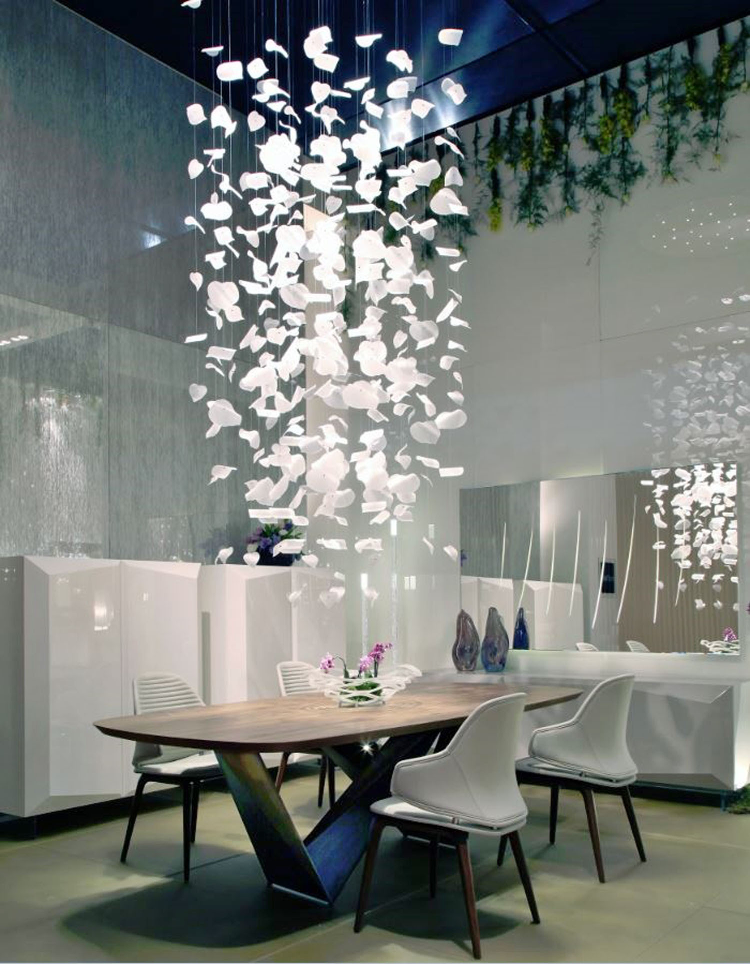 Composed of legs of crackle glass with details in chromed metal, the Transeo Dining Table is a brilliant work of art. This table features a 15mm glass top and 45 degree bevel.