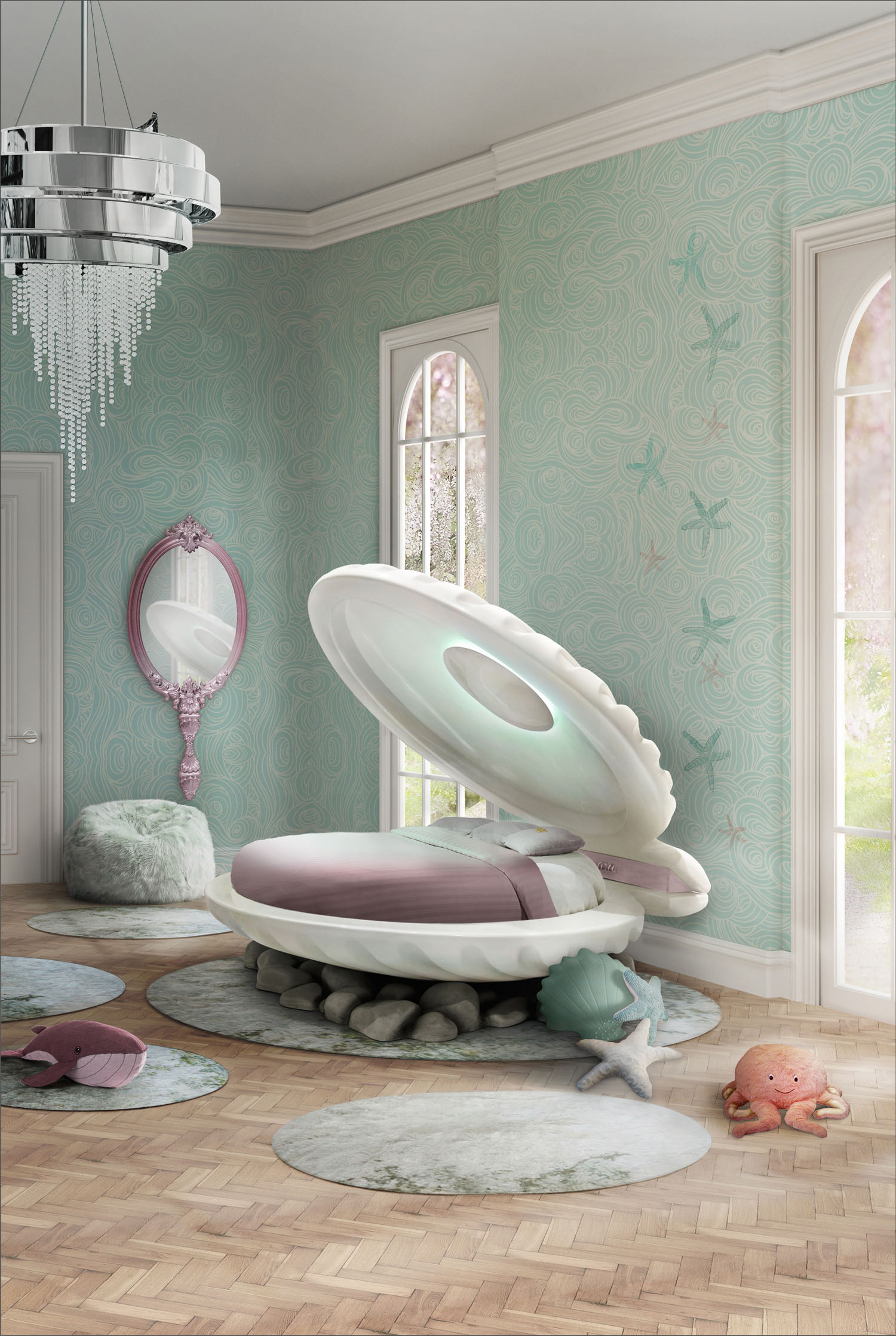 Perfect for under the sea adventures, this bed comes with a built-in night light and is made from nacre painted fibreglass.