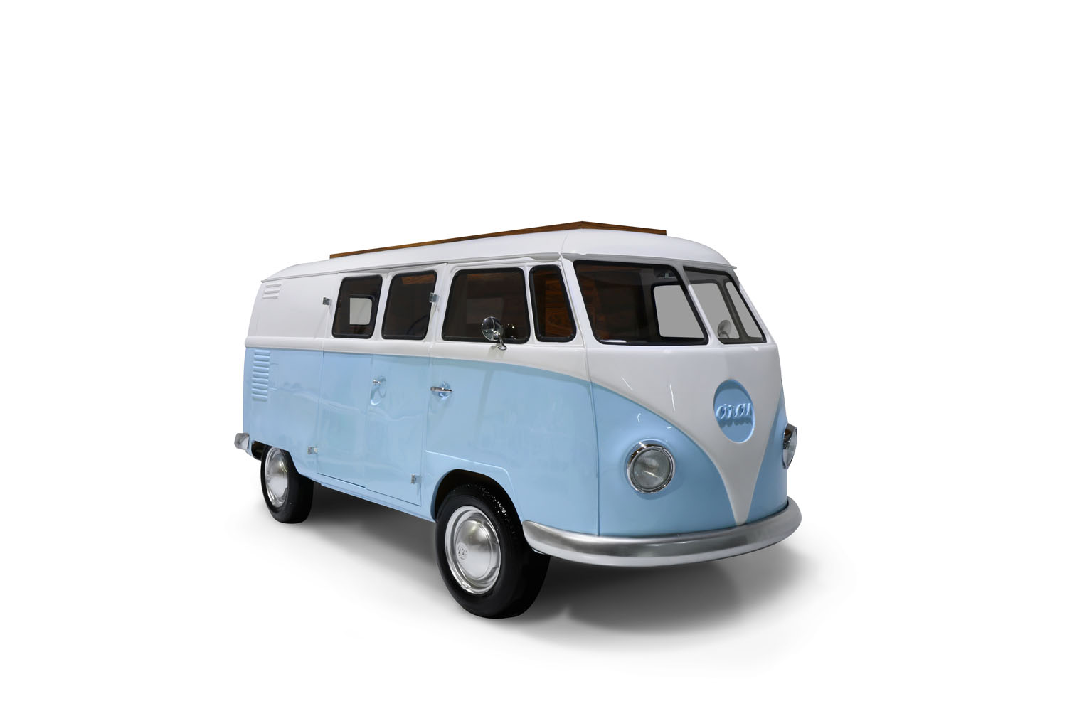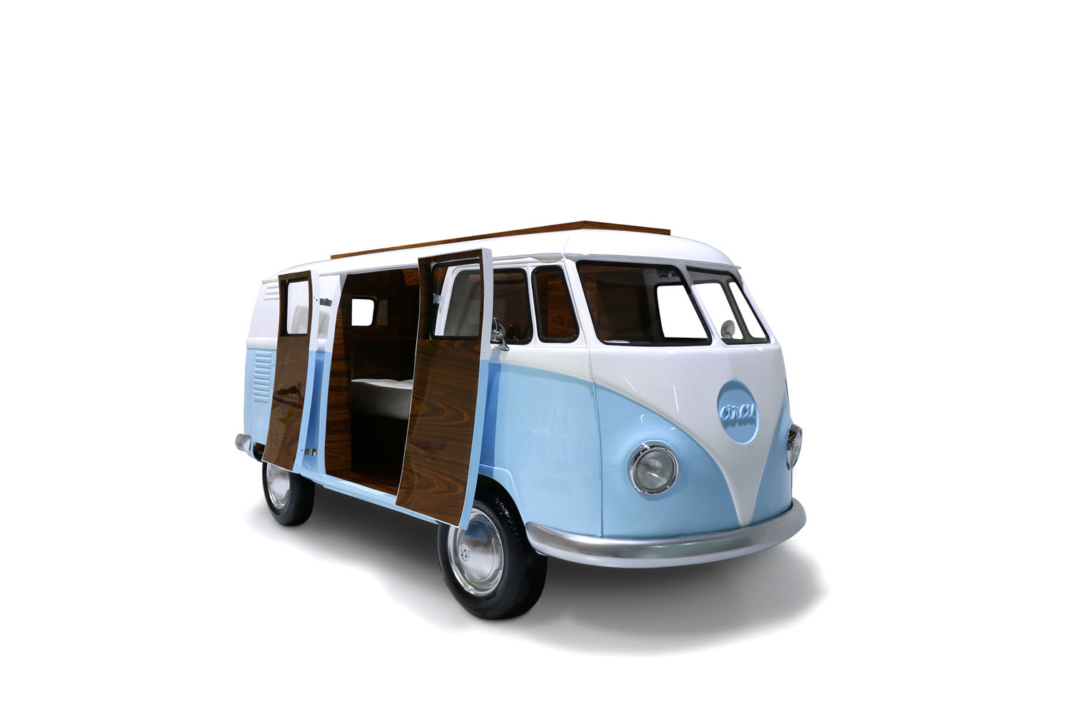 Fitted with several storage compartments, a bed, TV, secretary, mini bar and sofa, this van is perfect for young adventurers.