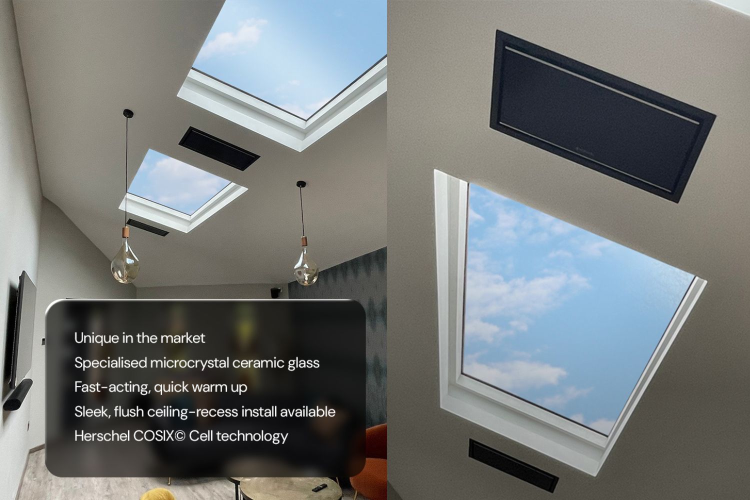 Constructed using specialised microcrystal ceramic glass and Herschel’s innovative COSIX© Cell infrared heating technology, Krystal offers a highly attractive, sleek and compact solution that can be neatly recessed into ceilings to ensure a contemporary, seamless finish for any interior.