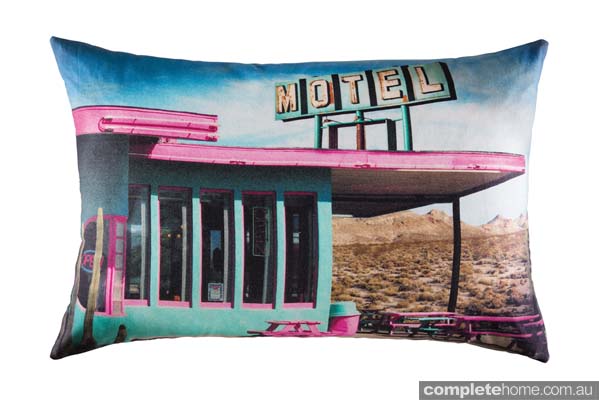 Create a beach holiday and retro roadtrip vibe with this Kas cushion. The aqua and pink are perfect for brightening any interior.