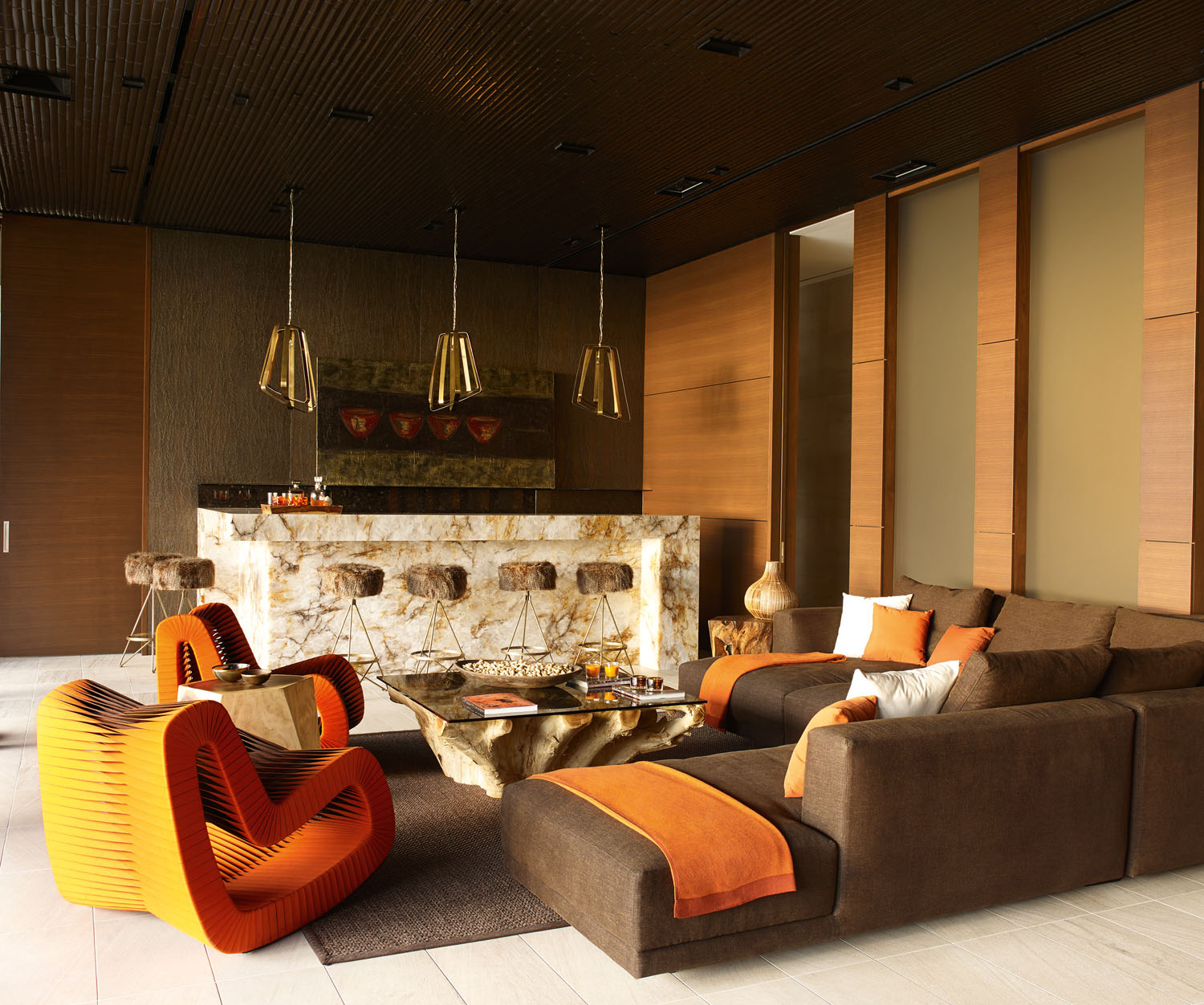 “Katherine was very involved in the project and where other clients sit back and wait for images and samples to be brought to them, she preferred to accompany me to the showrooms and look at finishes in the flesh or road test furniture,” says Dorothee. “She even went with me to a number of stone yards all over Florida to personally select the perfect slab material for kitchen and bar counters, as well as feature wall installations, ignoring the heat and dust of the stoneyards until we had secured all of the required stone lots.