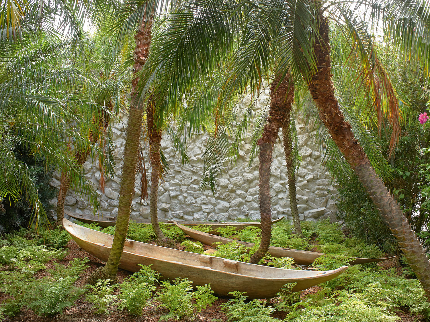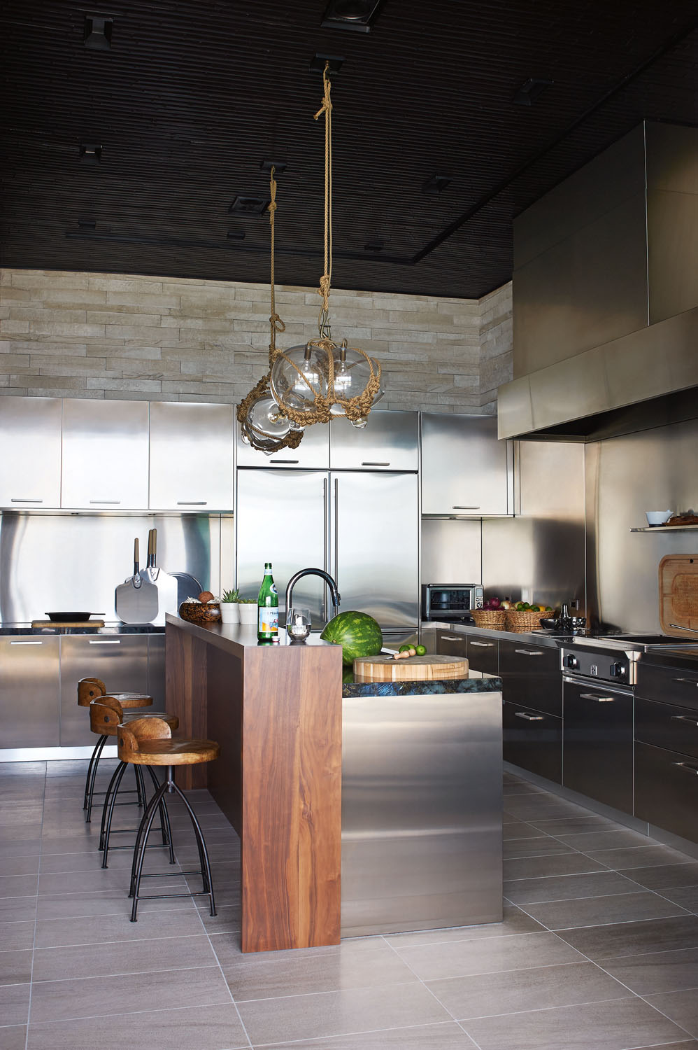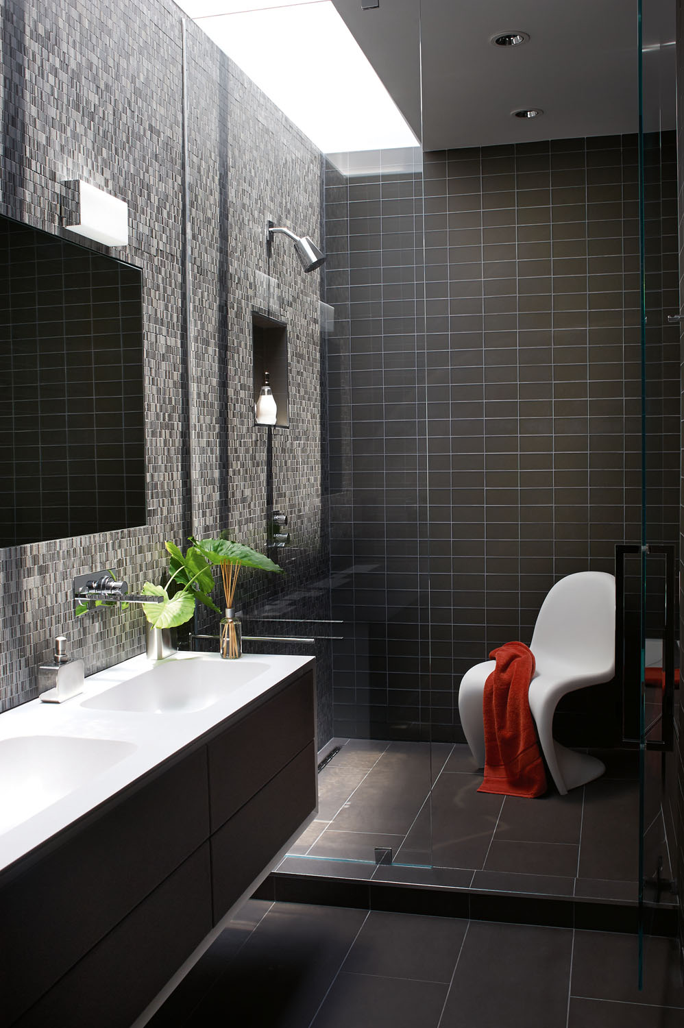In some spaces, such as the master bathroom, sustainable timber such as suar (samanea saman) from Bali was used. This non-endangered, fast-growing tropical hardwood has a criss-cross, interlocking grain that reduces the risk of cracking due to temperature changes. It is particularly suitable for large sculptures and furniture made from slab material.