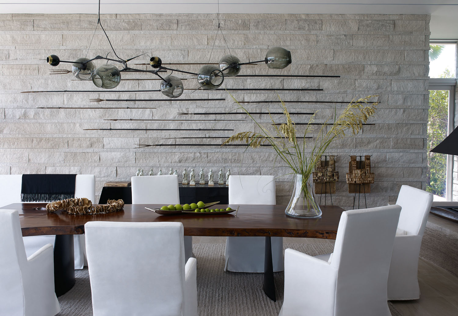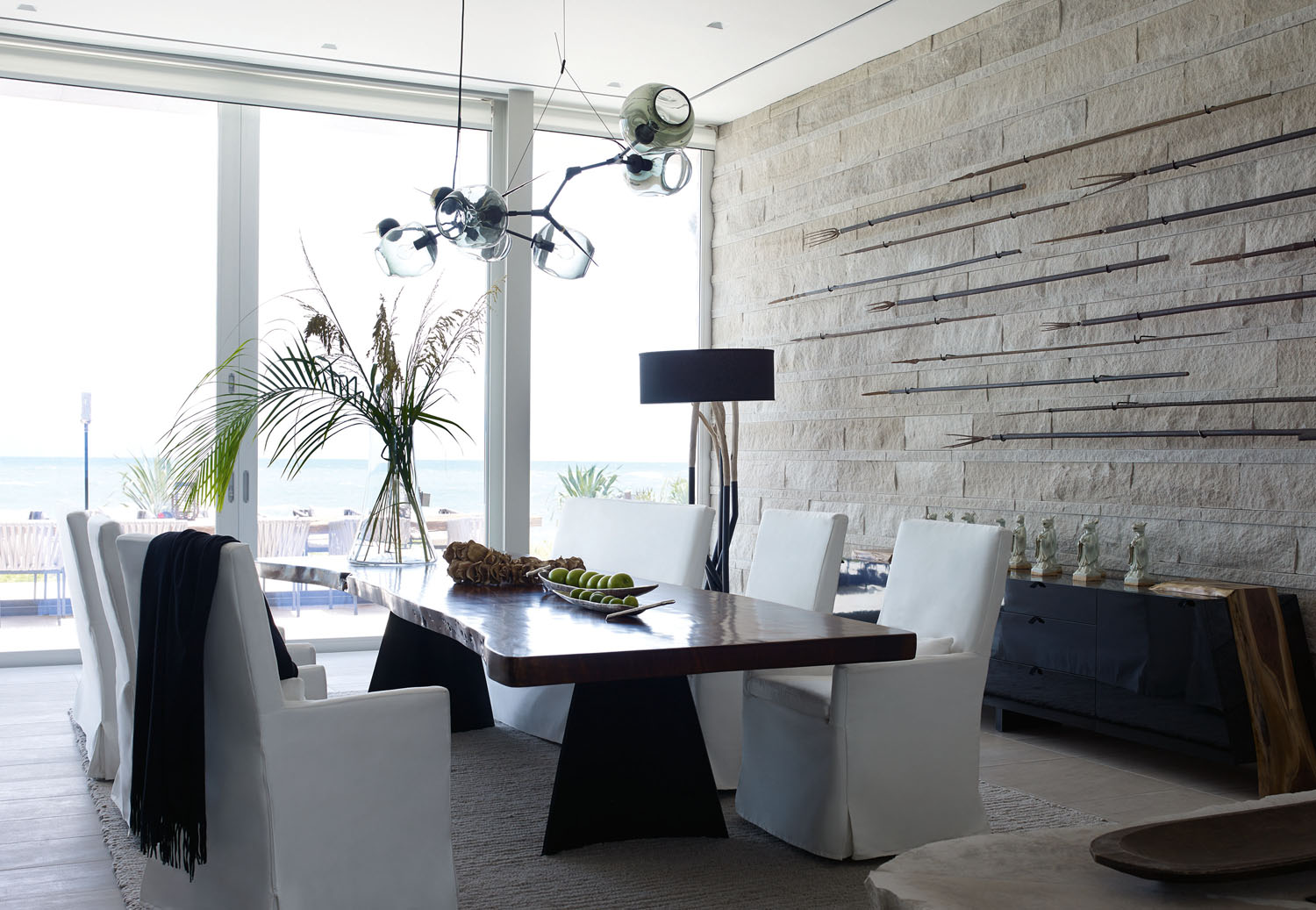 “When Katherine went to Bali, I gave her a list of shopping suggestions with reference images and asked her to look for a set of 10 to 15 antique fishing spears for an installation in the family dining area; various sculptures; wall art pieces and large live edge timber slabs to become table tops and vanity counters.