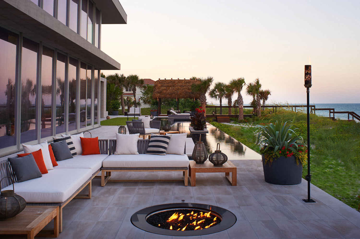 Located in Vero Beach, Florida, this contemporary residence offers magnificent oceanfront living in a stunning setting surrounded by lush gardens. Completed in 2014, the 18,400-square-foot, architect-designed home occupies almost the entire width of 200 feet of ocean frontage, maximising ocean views from all primary rooms.