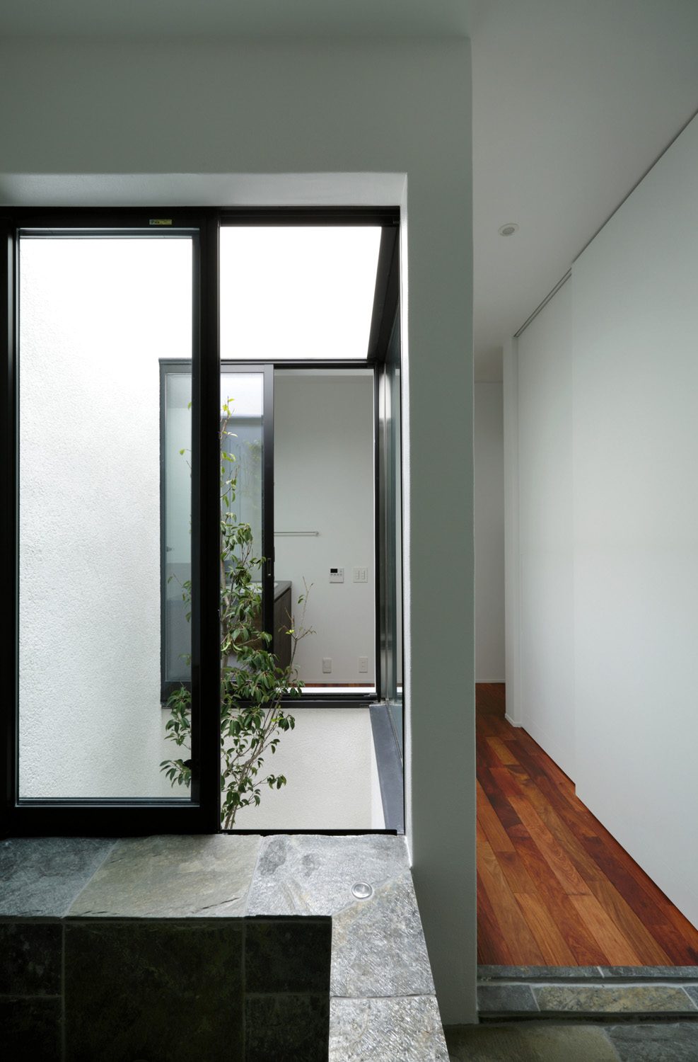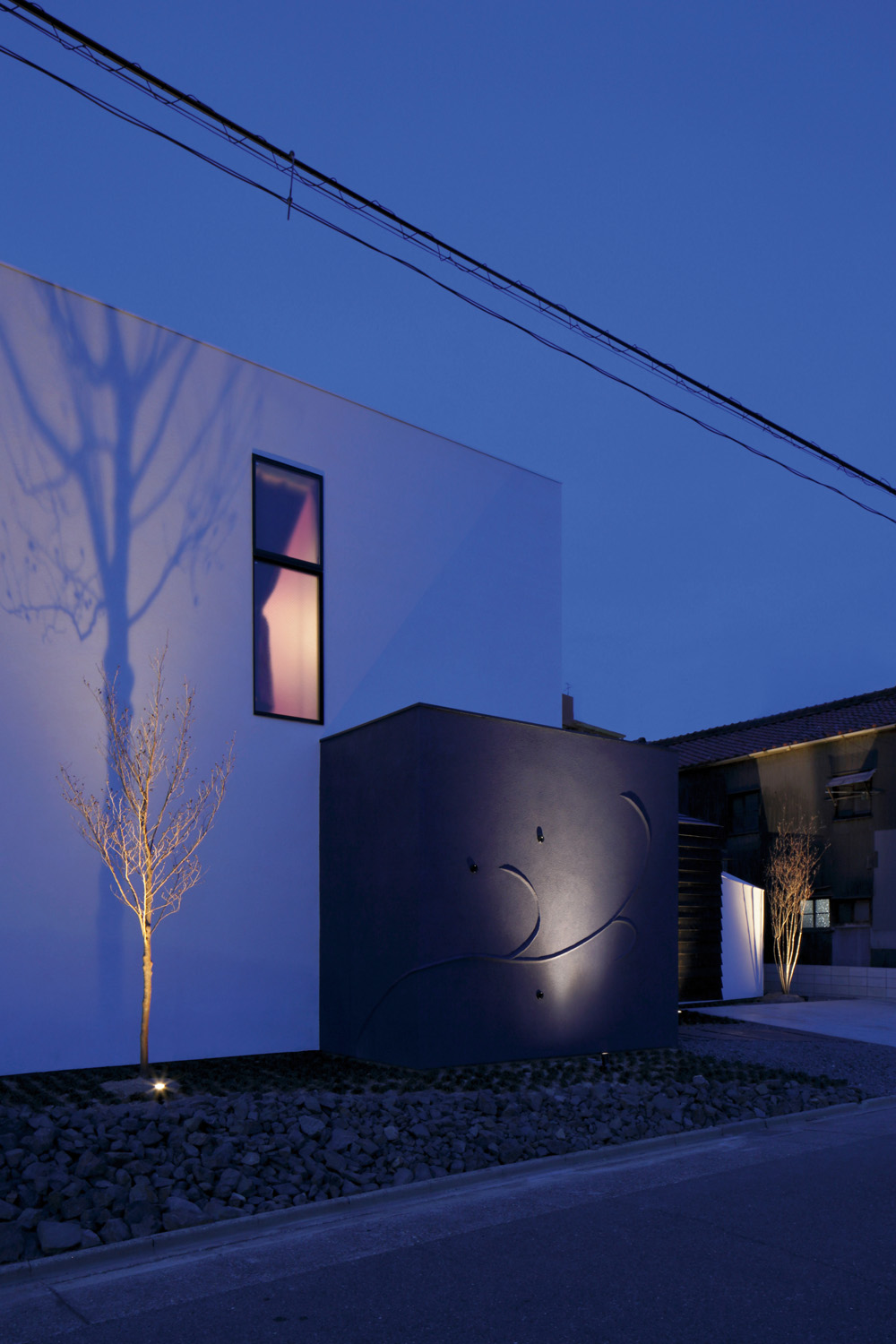 Located in Nagoya, Japan, the home is perched in the largest and fourth-most-populous city in the Chubu region of Japan, which plays house to a massive 21.72 million people. In an area where high-rise living and small properties are the norm, creating a space that is essentially and unmistakably yours is a luxury that should be afforded. “We designed a house for a father and a daughter,” says CUBO spokesperson Chika Muto. “The father asked for a modern Japanese style and the daughter asked for an artistic interior design with a vivid colour scheme.” With a strict brief to adhere to and two people to please, the entrance hall and red staircase serves as the buffer between the two distinct areas. “A sliver of light penetrates through the space, creating a theatrical impression like a stage set welcoming visitors,” says Chika.