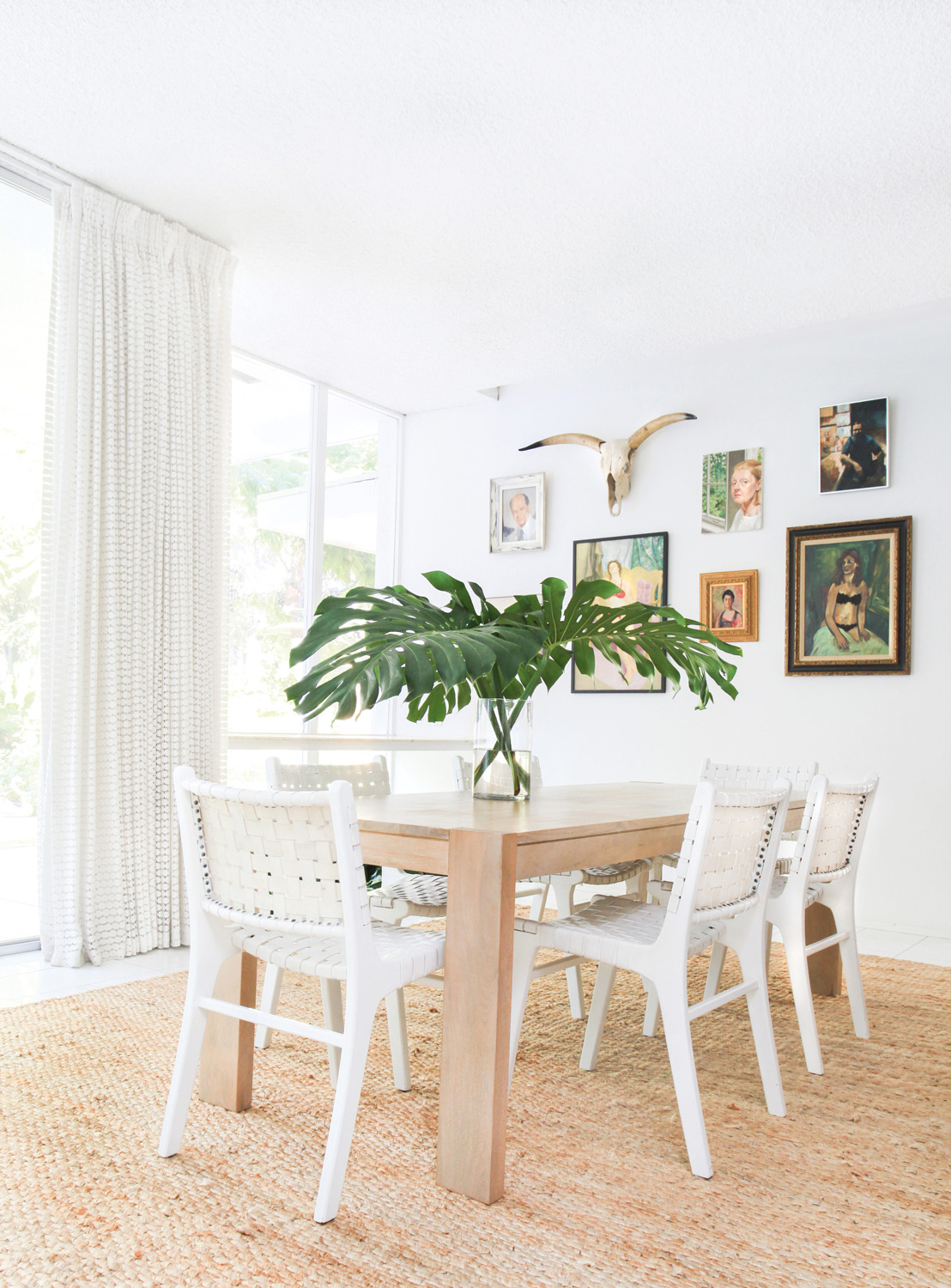 Due to the reliance on furnishings, the selection of art in this home was of the utmost importance. “Kelly and I had a great time figuring out the art,” admits Orlando. “We commissioned a gorgeous painting from Erika Gragg for the living room, and one of the most fun things we did was look for nude portraits at the flea market, which Kelly painted swimsuits on. They look kind of hilarious and I love that it brings her humour into the space.”