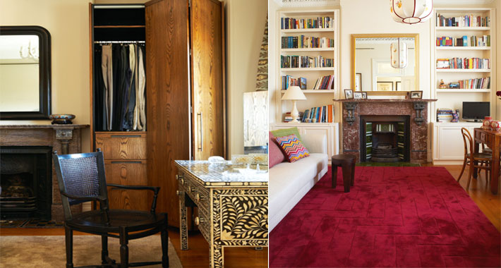 In this master suite, one of Andrew’s favourite parts of the home, a combination of the new wraparound timber joinery and wing armchair by the fireplace redefined the space as a private sanctuary/reading spot away from the main living area. The joinery has now created a panelled-room feeling.