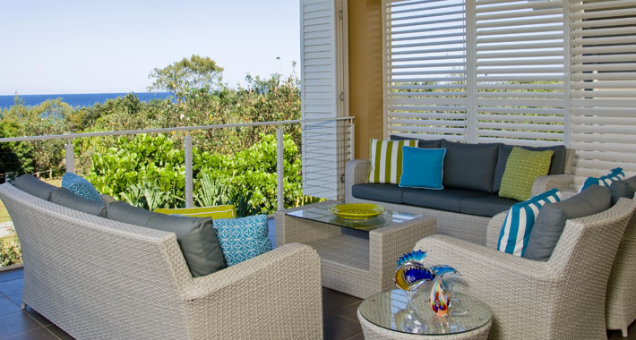 “First thing was to get rid of the heavy, velvet drapes and pelmets and insert shutters,” says Renee. Shutters are a modern style of window covering which provide privacy without interrupting the flow of natural light. Sheer curtains were also installed as window coverings to achieve the same purpose, but also for their lightweight aesthetics, allowing the ocean breeze and enticing salty smell to fill the home.