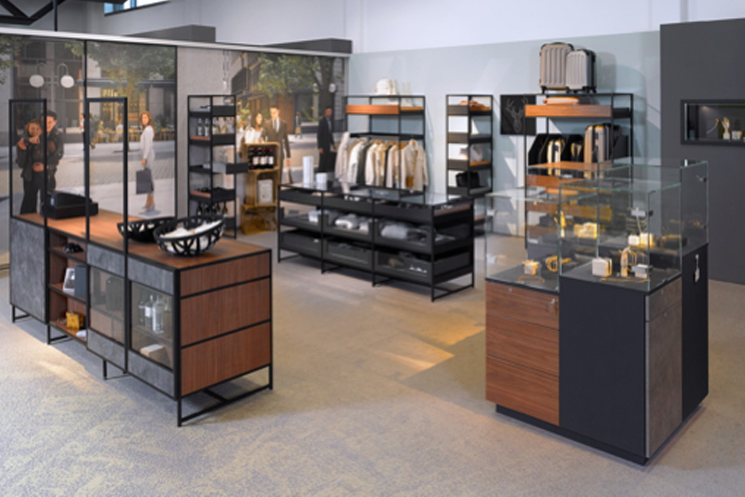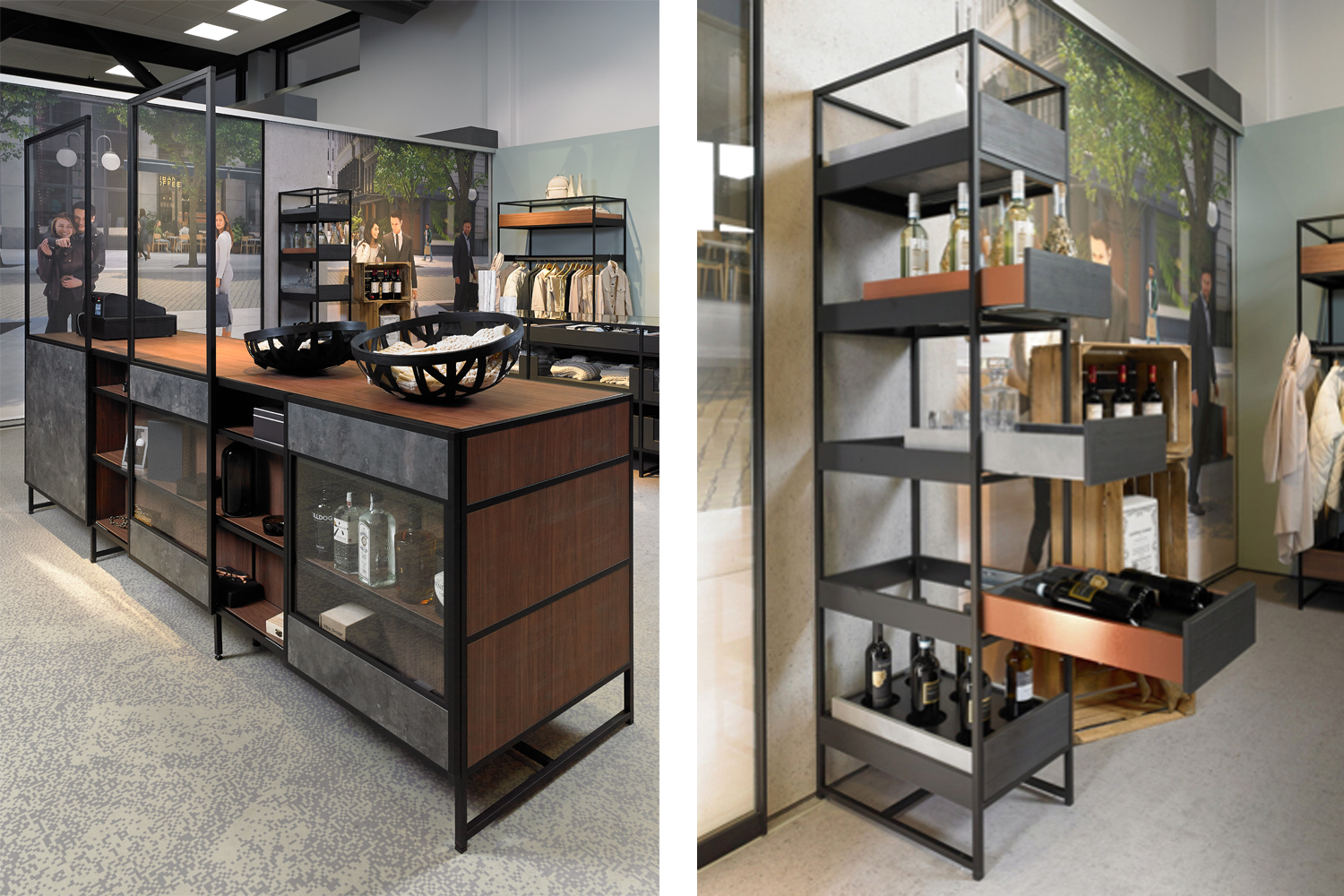 The Cadro frame system is extremely easy to assemble and install too. The aluminium profiles are shortened to any length, with holes being drilled for the threaded studs at a standard distance from the end of the profile. Now all it takes is to insert the connecting node and tighten up the threaded stud. All with a precision finish without unsightly gaps. Cadro assembly aids make assembly fast and easy for a look of perfected craftsmanship. The Cadro frame system from Hettich creates a new generation of furniture that can be designed in many different ways, coming with clear added value for shop and interior fitters, retailers and end consumers.