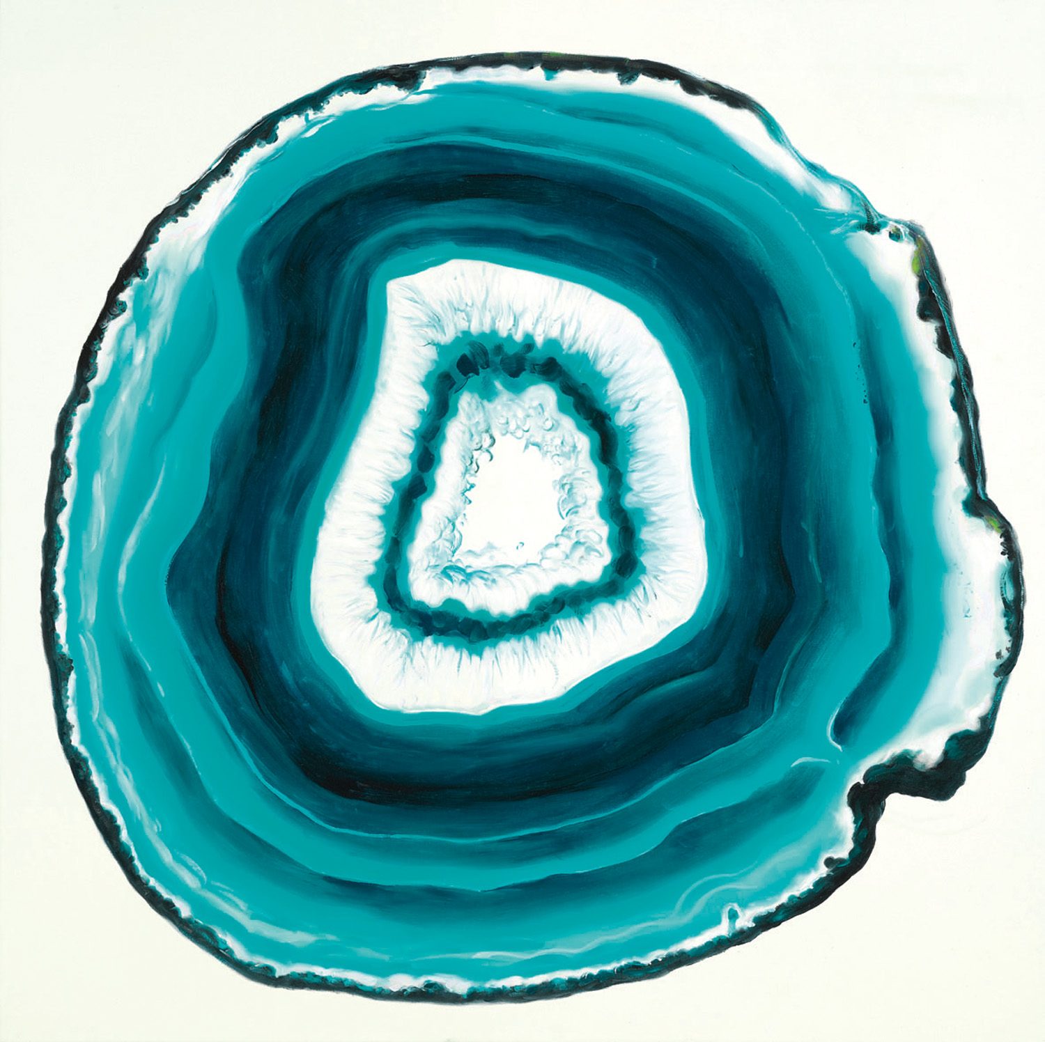 The Agate Slice coasters from Urban Road are made from naturally formed, semi-precious gemstones pictured in aqua and pink.