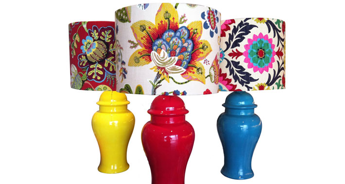 The Lipika, Georgia and Claudia lampshades from STEAL THE LIMELIGHT are paired with bright, hand-painted and –glazed ginger jar bases. RRP $390. steal-the-limelight.com.au