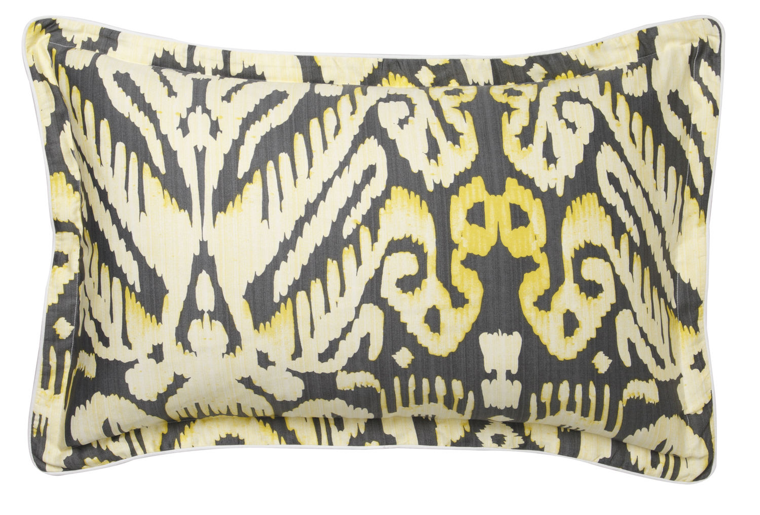 The Java Charcoal pillowcase from Ltd by Logan & Mason fuses Aztec designs with muted colours. loganandmason.com.au