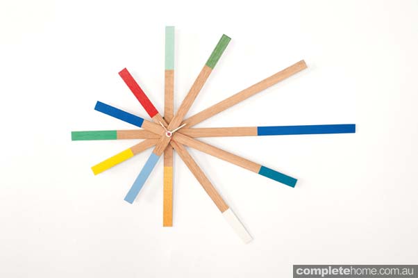 Handmade to order, each Starburst clock wall art from SENKKI FURNITURE is one of a kind and painted at random using a range of vibrant colours, including gold, mint and bright red. Featuring 12 sticks made from American white oak, the Starburst wall art can be displayed any way you like.
