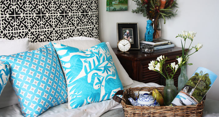 “Bohemian” and “maximalist” are perfect descriptions of Cris’ personal style, evident throughout Eco Chic’s impressive collection of eco-friendly homewares and furnishings. “I love colour and texture, prints … lots of layers and eclectic pieces with soul and character,” she says. Staying true to her eco design philosophy, every item in Cris’ house is second-hand. “I avoid trends for both myself and my clients as I don’t want pieces being thrown out in five years,” says Cris. “I like timeless style that you can freshen up with some new accents.”