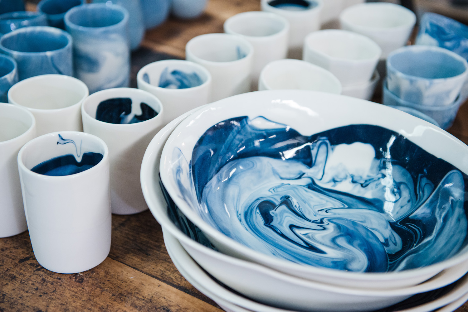 Revolving around the concept of beautiful but practical objects, the Marble collection is a true demonstration of the refinement and time that goes into each piece. In a colour palette of blue and white, Milly’s Marble collection and style “plays on traditional porcelain wares and warps them to create contemporary pieces, which are fixed in the movement used to make them. I try to keep things clean and balanced to create works that are distinctive and unique.”