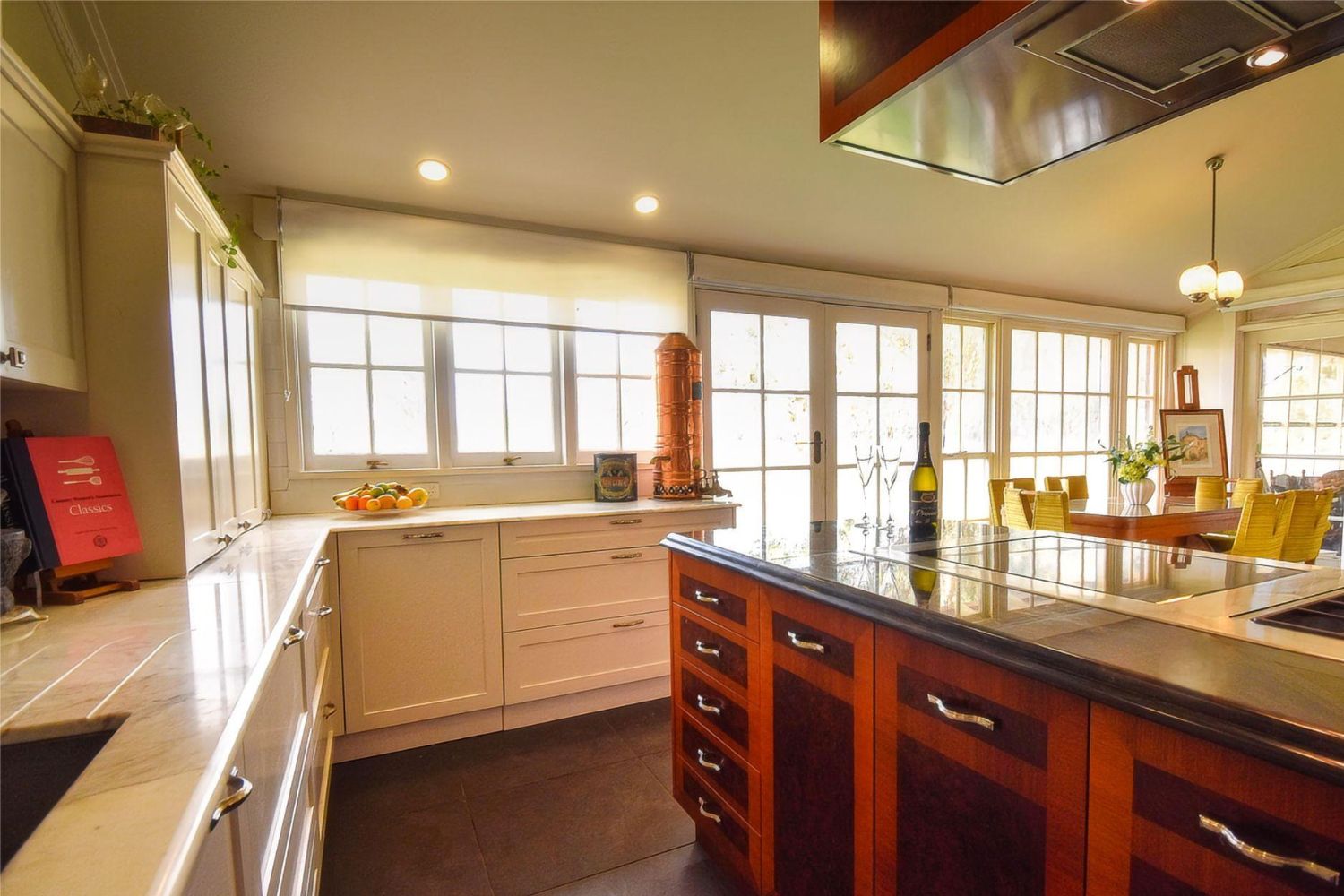 Storage was a top priority given the property’s rural location, and the couple’s extensive cookbook collection. The renovation introduces generous cabinetry, large pantry space and smart fridge storage to meet these needs.