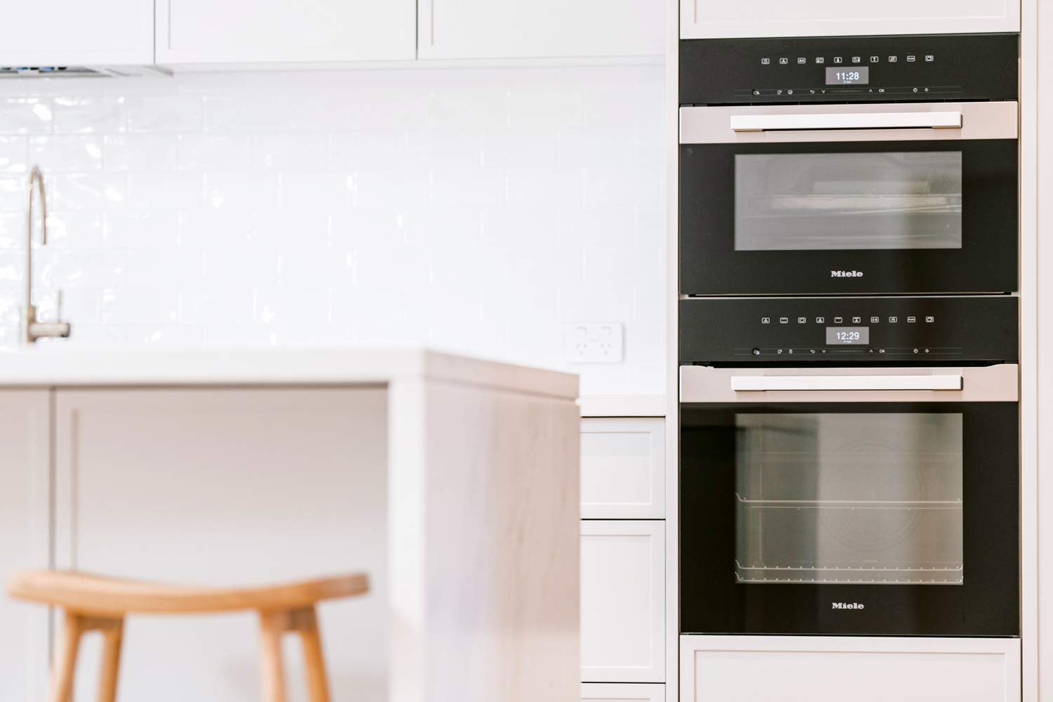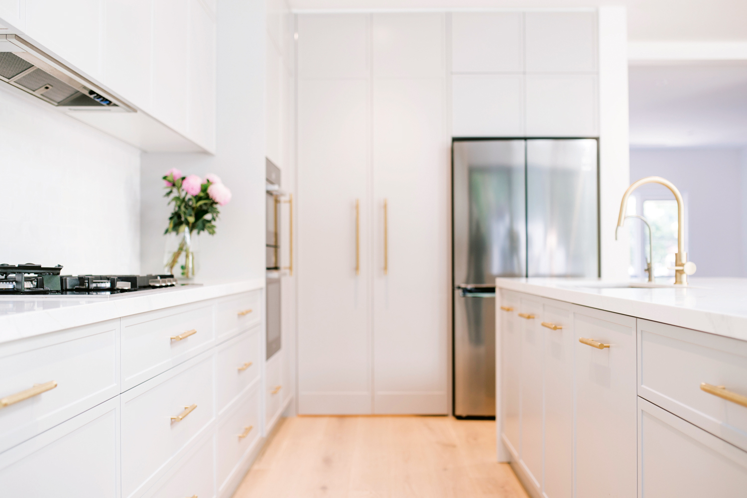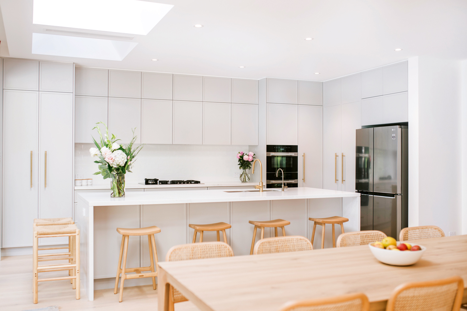 Hence, what you see now is a cook’s paradise with ample benchtop space. The big walk-in butler’s pantry provides even more storage for appliances and food, leaving the kitchen clean and free of clutter. The gorgeous brass Lo and Co handles lend sophistication and style to the space.