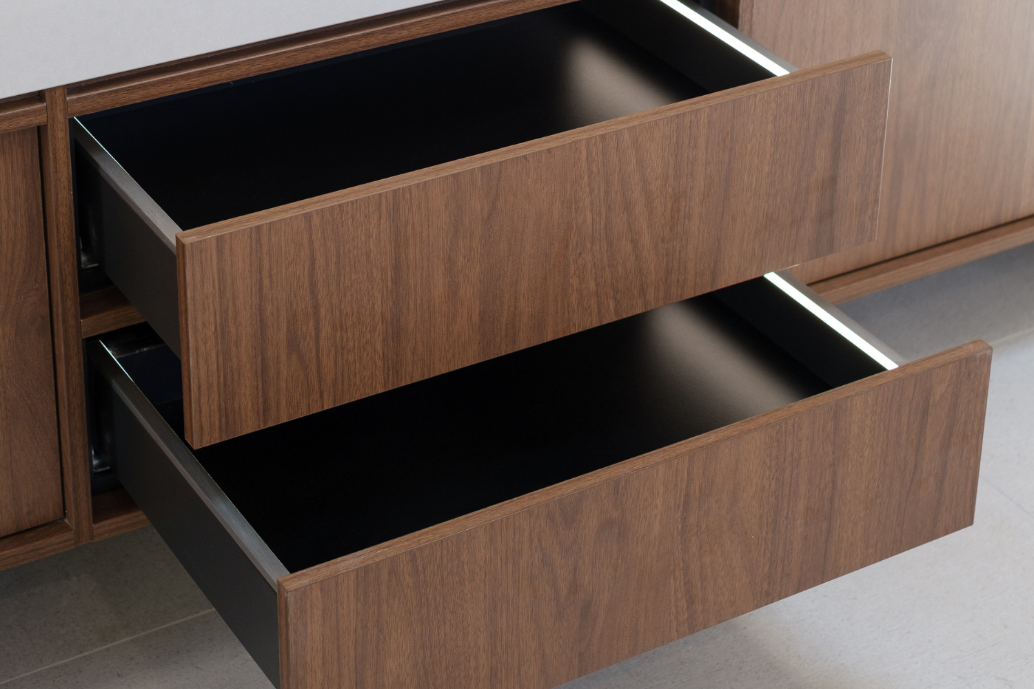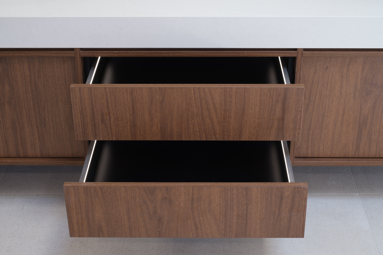 Unique inlays on the side of the drawer set these apart from others, allowing you to display the drawer’s internal contents with transparent glass inlays, which with the complimentary lighting of Illumination, create a sense of elegance and an impactful yet stunning statement.