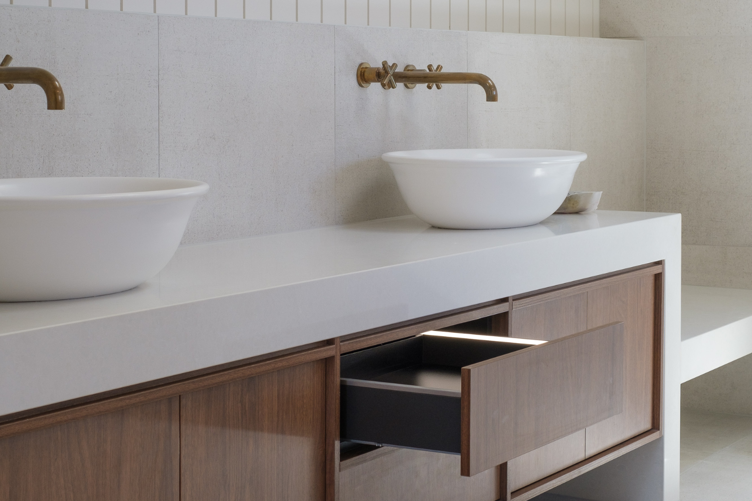The AvanTech YOU Illumination drawers match this aesthetic, additionally add a stunning glow when opened, enhancing both the kitchen and bathroom spaces, with impressing hardware quality and sleek, slimline design, making it a feature they plan to specify in further future projects.