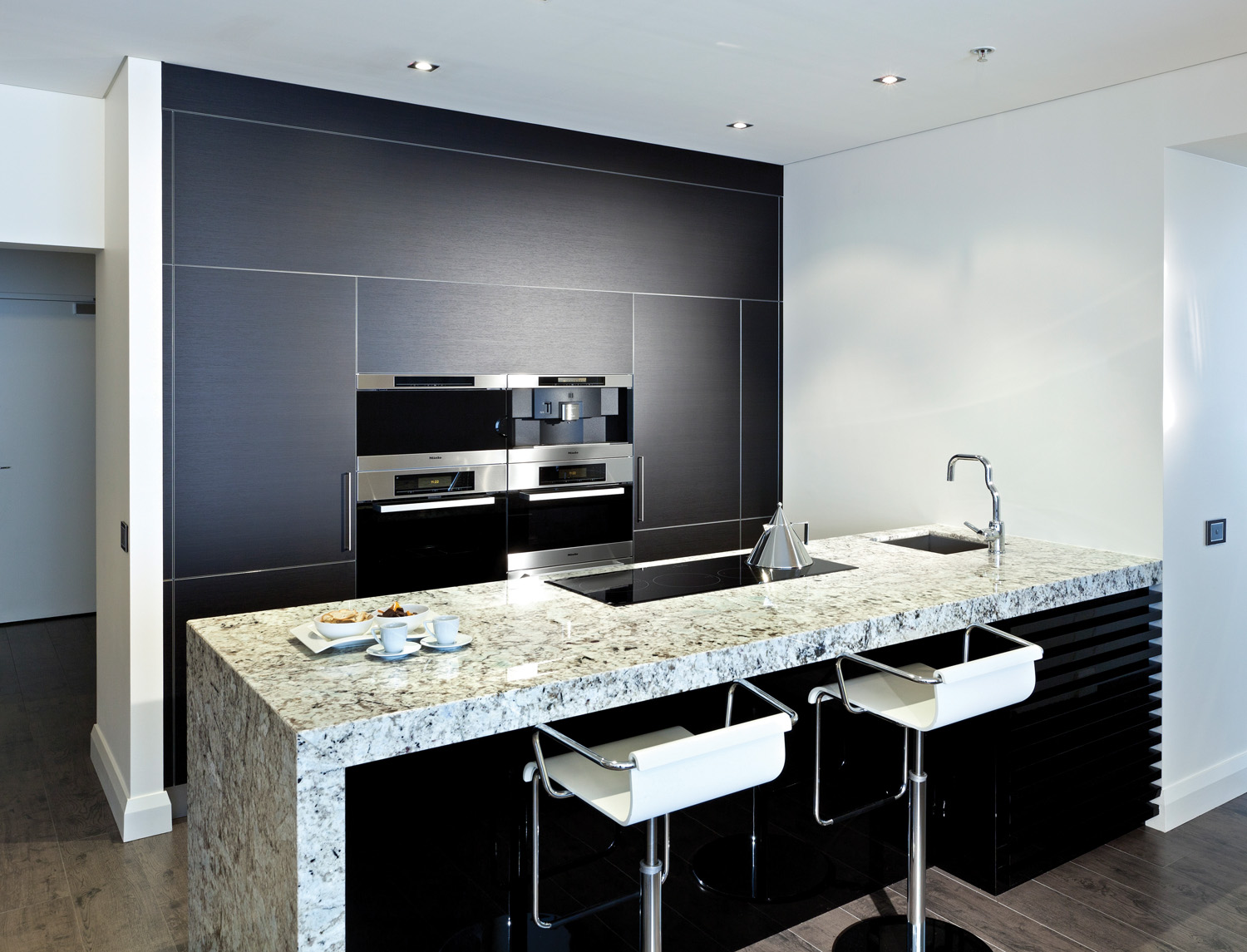With all its bells and whistles, the kitchen design fits comfortably in a small apartment