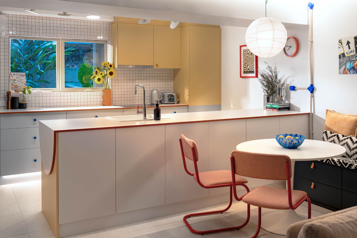 The owners wanted more than just a practical update. Their brief was for a kitchen that would embody Postmodern and Memphis Milano influences while delivering a joyful and tactile environment. Functionality, organisation and enhanced flow were as important as aesthetics, with a focus on maximising storage and upgrading appliances and fittings.
