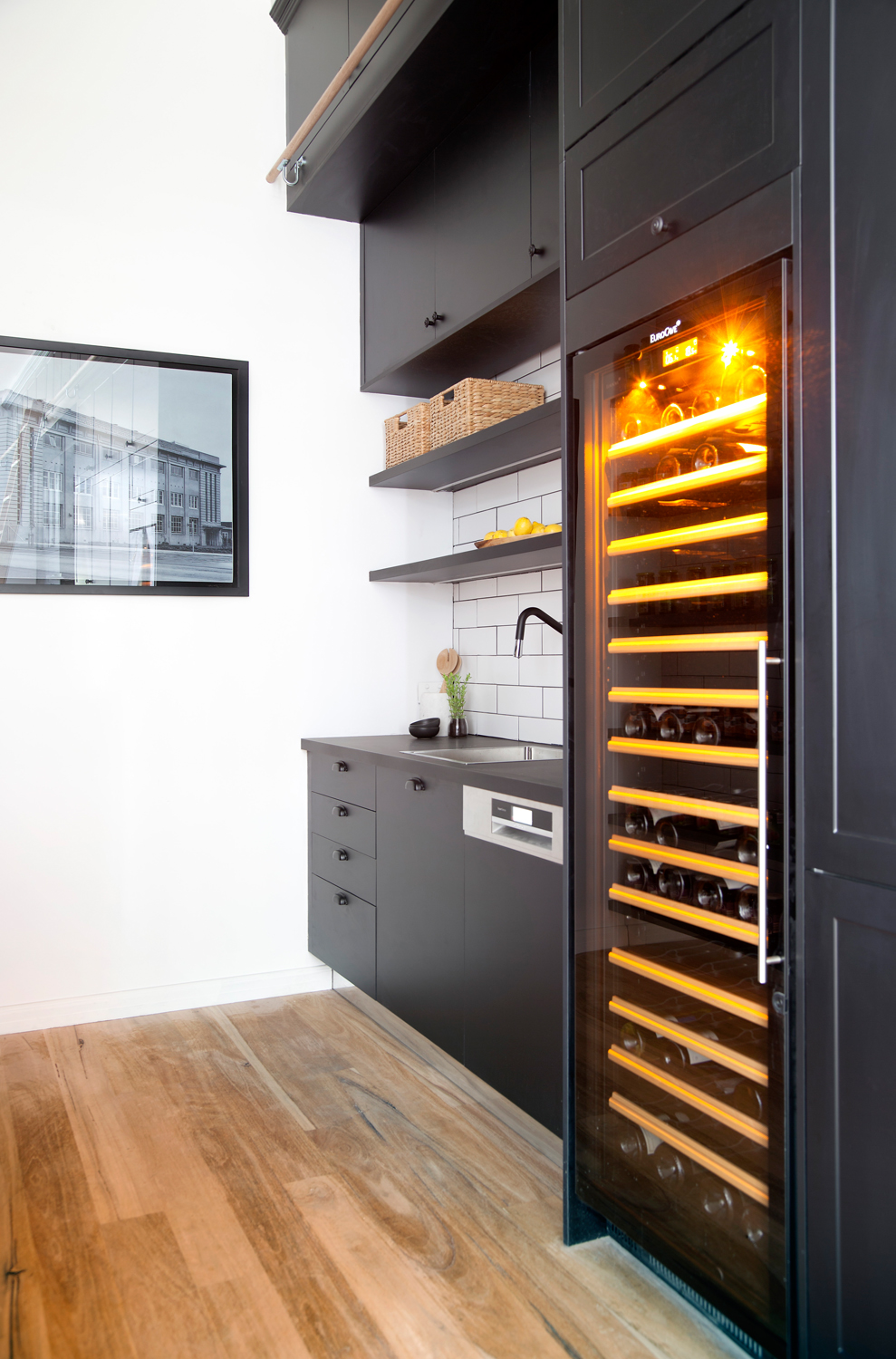 The most beautiful aspect of this kitchen is the fusion between old and new, the result of which is a respectful approach to the heritage of The Block building, with features including shaker style doors and rustic library ladder.