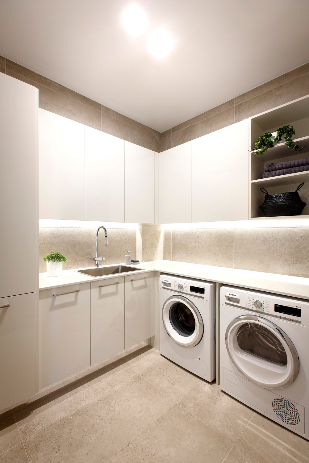 Integrated appliances by Bosch, a display nook within the island bench, and heavy use of touch catch cabinetry throughout, further enhances the modern and sleek design.