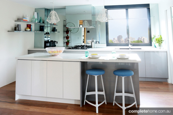 Alisa and Lysandra featured cabinetry in Alaskan Gloss White; Caesarstone benchtops in Frosty Carrina with a 40mm edge.