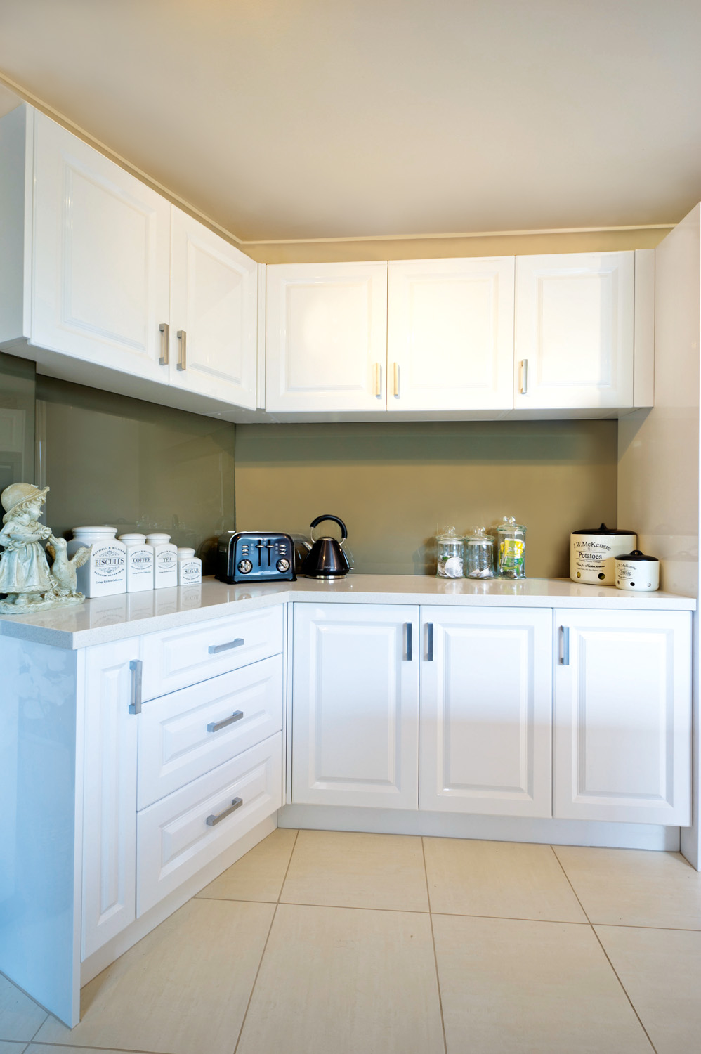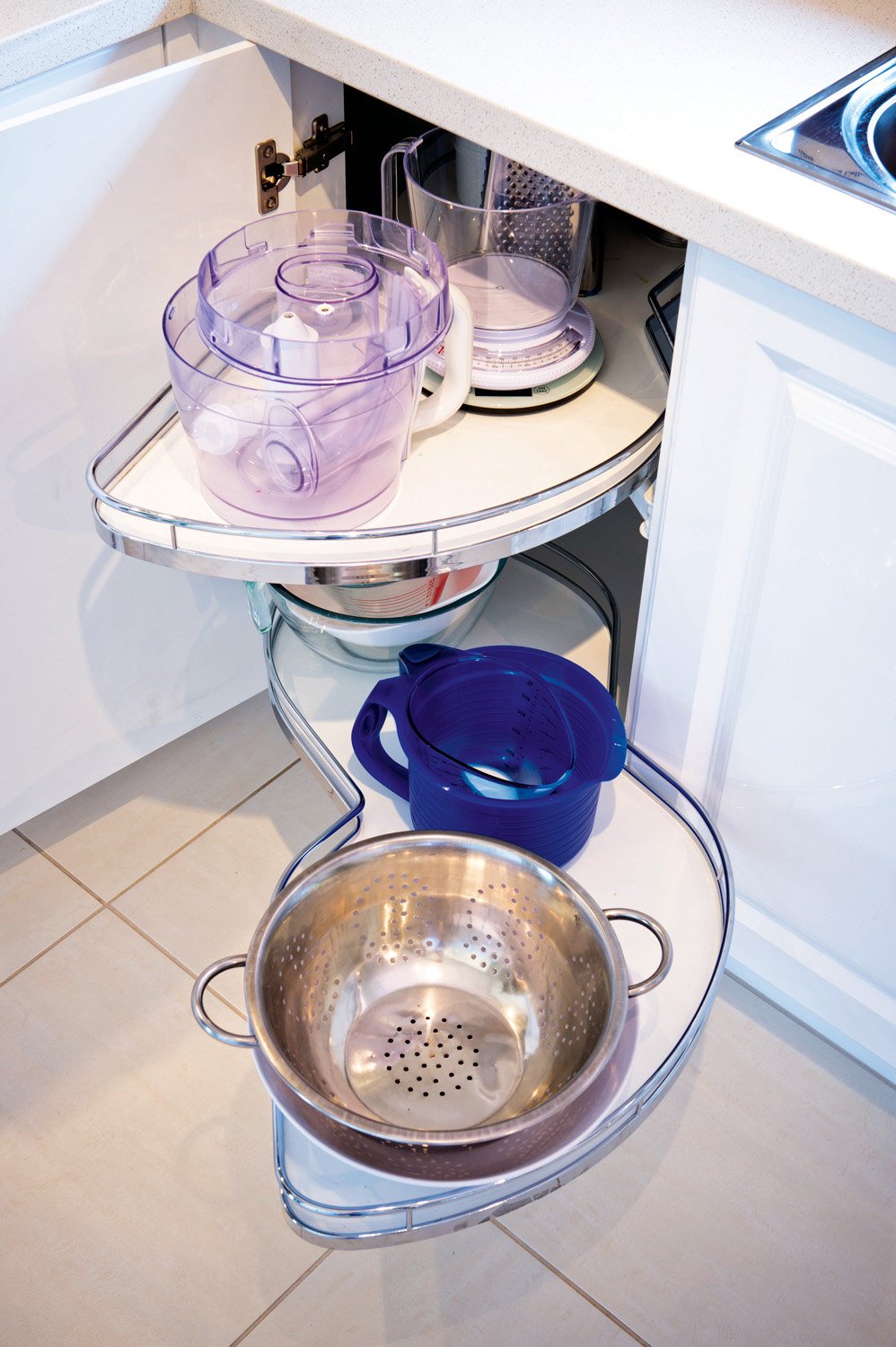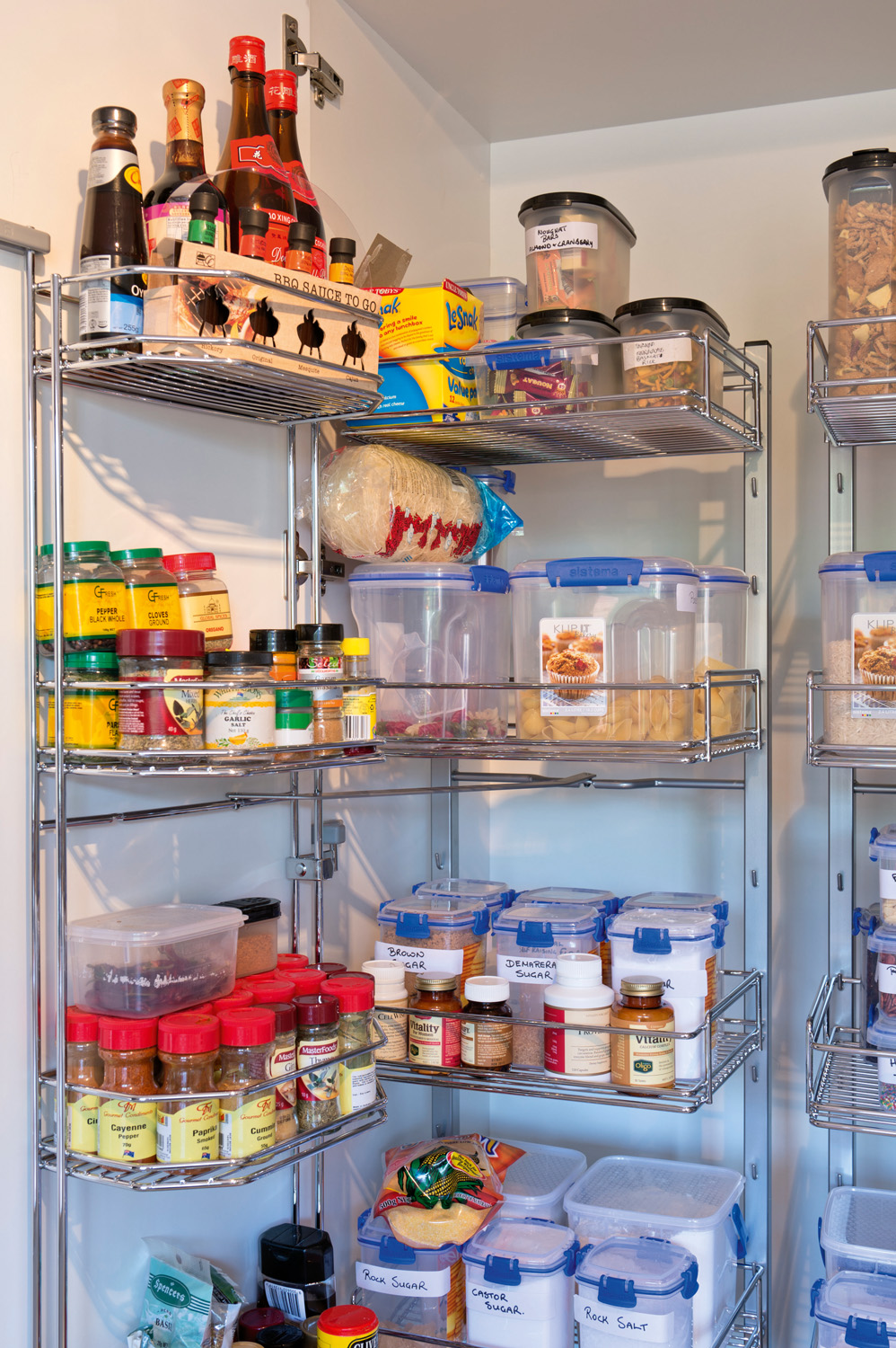 “This new kitchen makes a statement. It’s functional and is everything the owners wanted, and more. The result is much more impressive than what they had envisaged. The clients knew what they wanted so we worked together to bring their ideas to life and incorporate everything they had dreamed of having in a new kitchen. The couple wanted easy access to their cabinets so we incorporated Häfele’s tandem pantry into the design. This is one of their favourite items as it makes reaching canned and dried goods so much easier. The fitters initially told the clients that wine racks wouldn’t work in the space, but with some persuasion they were fitted by setting the racks back from the leading edge of two doors to incorporate them into the design.”