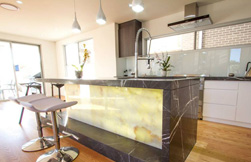 A: Marable Slab House presents itself as a fine gallery for natural stone slabs, the gallery welcomes you to pay a visit and enjoy a wide range of natural stone slabs which has been personally chosen and ready to be customised to your requirements. Marable Slab House is located in the eastern suburb of Sydney and it is easily accessible by any means of transport. Our main specialism is in kitchen benchtops, island tops, splash backs, vanities, feature walls and fire places.