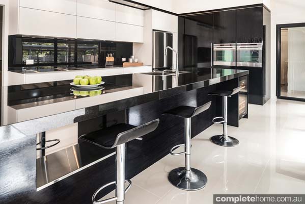 I think we’ve achieved a good balance between them and the natural white cabinets in a satin finish. The client originally wanted a mirrored splashback but we felt that would be too reflective with the stainless steel, so the black-glass splashback was a nice compromise.”