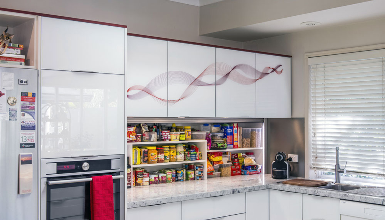 The splashback pantry will transform your kitchen, providing extra storage for everything from food, crockery, glassware, appliances and more, while not disturbing the look of your kitchen.