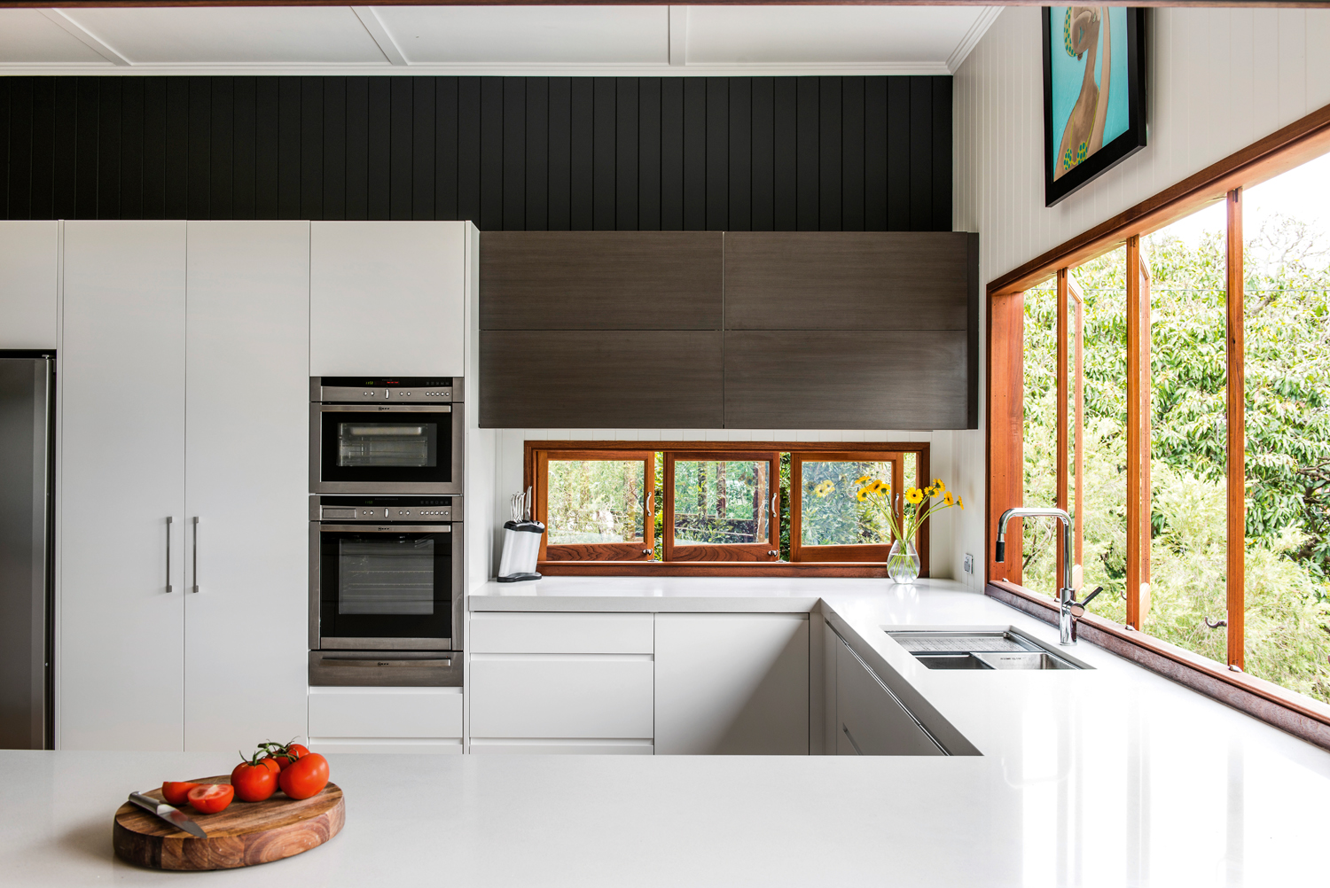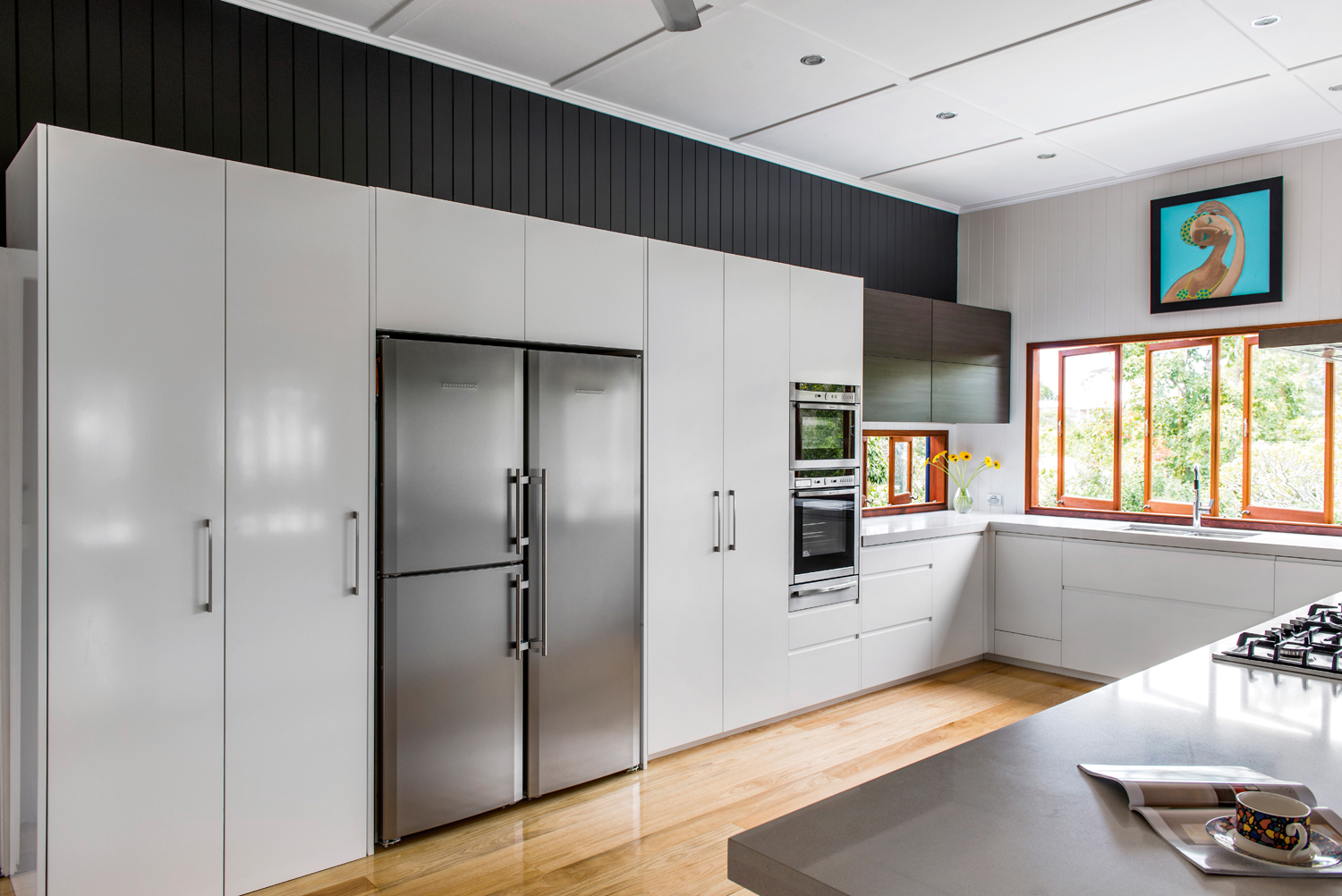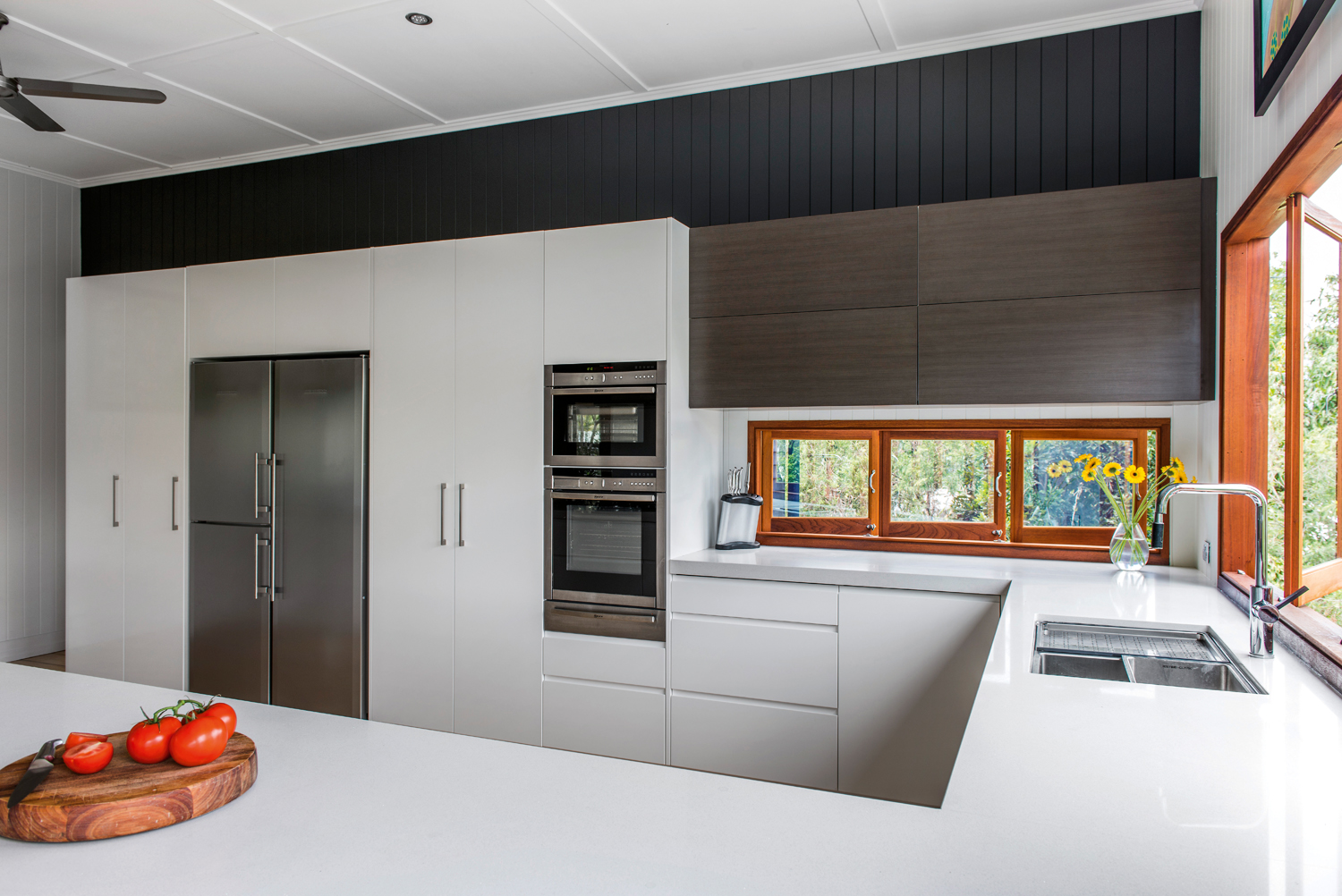 Although the design is modern with lots of clean lines, it’s timeless because of the classic colour palette we selected. The kitchen features loads of benchtop space and storage, as well as an office area to keep mail and other paperwork out of sight. We used Blum’s electronic Servo-Drive system for the wall cabinets, which open to the touch and close with the press of a button. The 60mm thick benchtop is a design feature as it creates visual impact. Drawers are used throughout the kitchen as they are the best option for storage.”