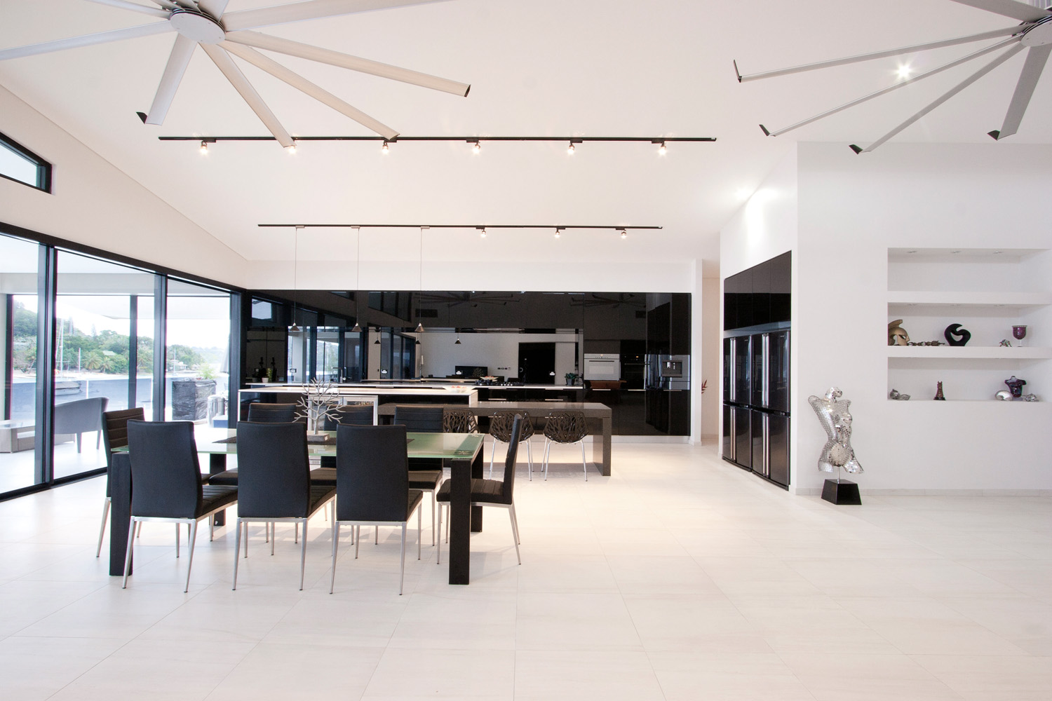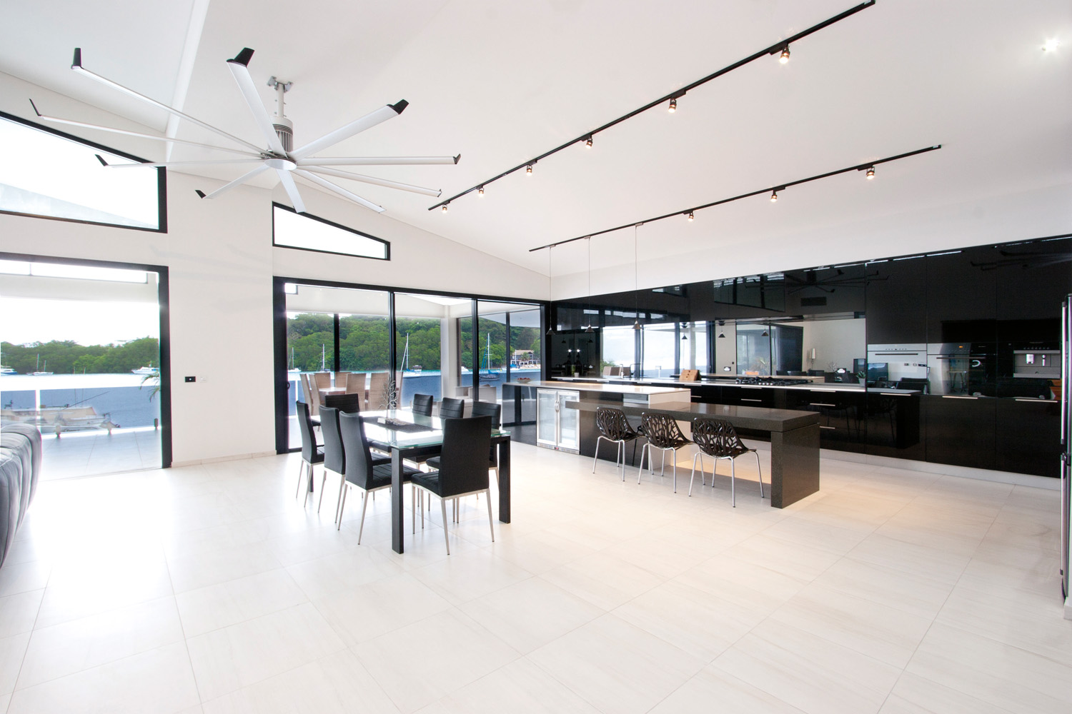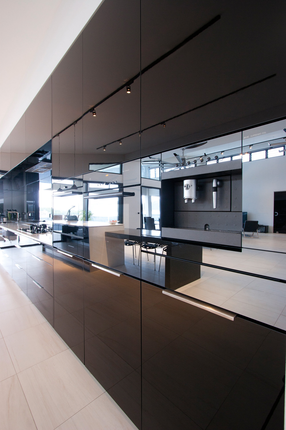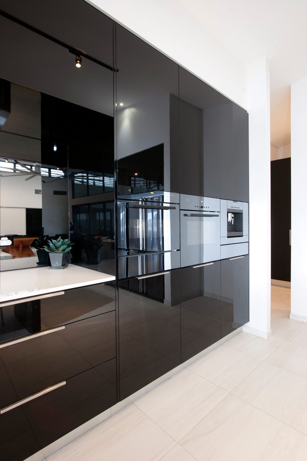 Incorporating minimalist design, luxury and intensity, this black gloss kitchen located in Vanuatu is of exceptional design