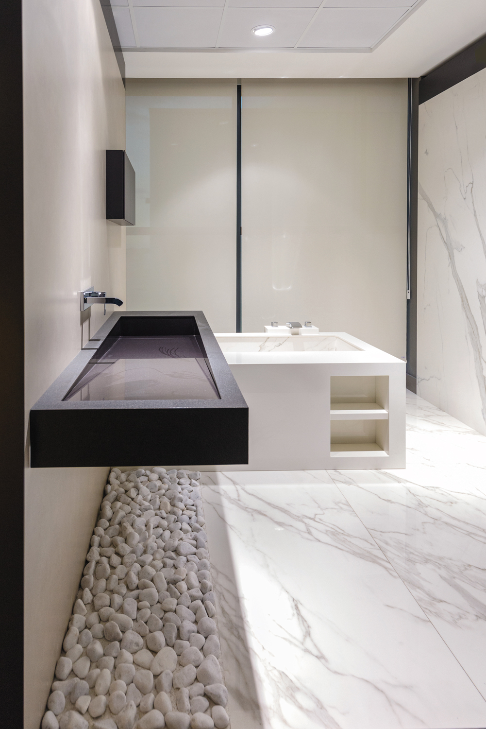 The advanced industrial surfaces are resistant to heat, UV rays and scratches, making Neolith suitable for application within high-traffic areas as well as outdoors.